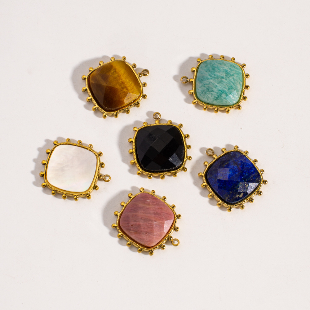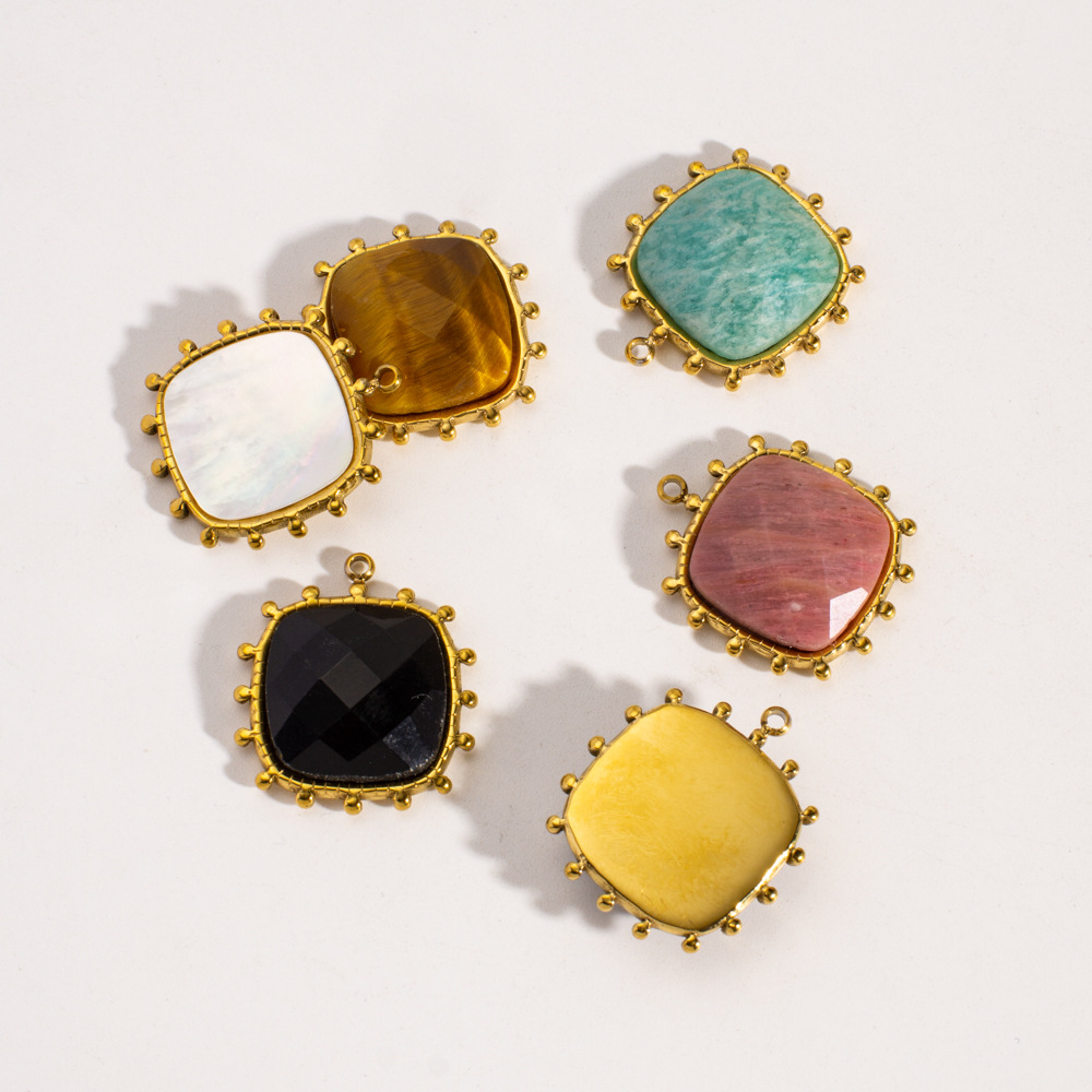 Gemstone Pendants Jewelry, 304 Stainless Steel, with Gemstone, Square, gold color plated, DIY & different materials for choice, 19x21mm, 10PCs/Bag, Sold By Bag