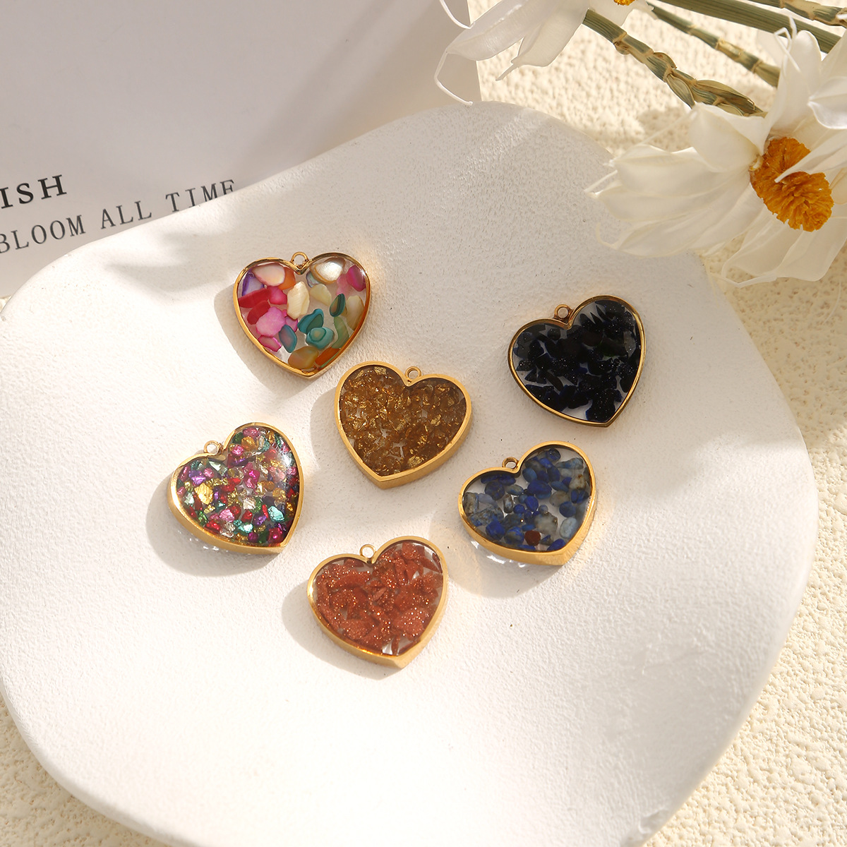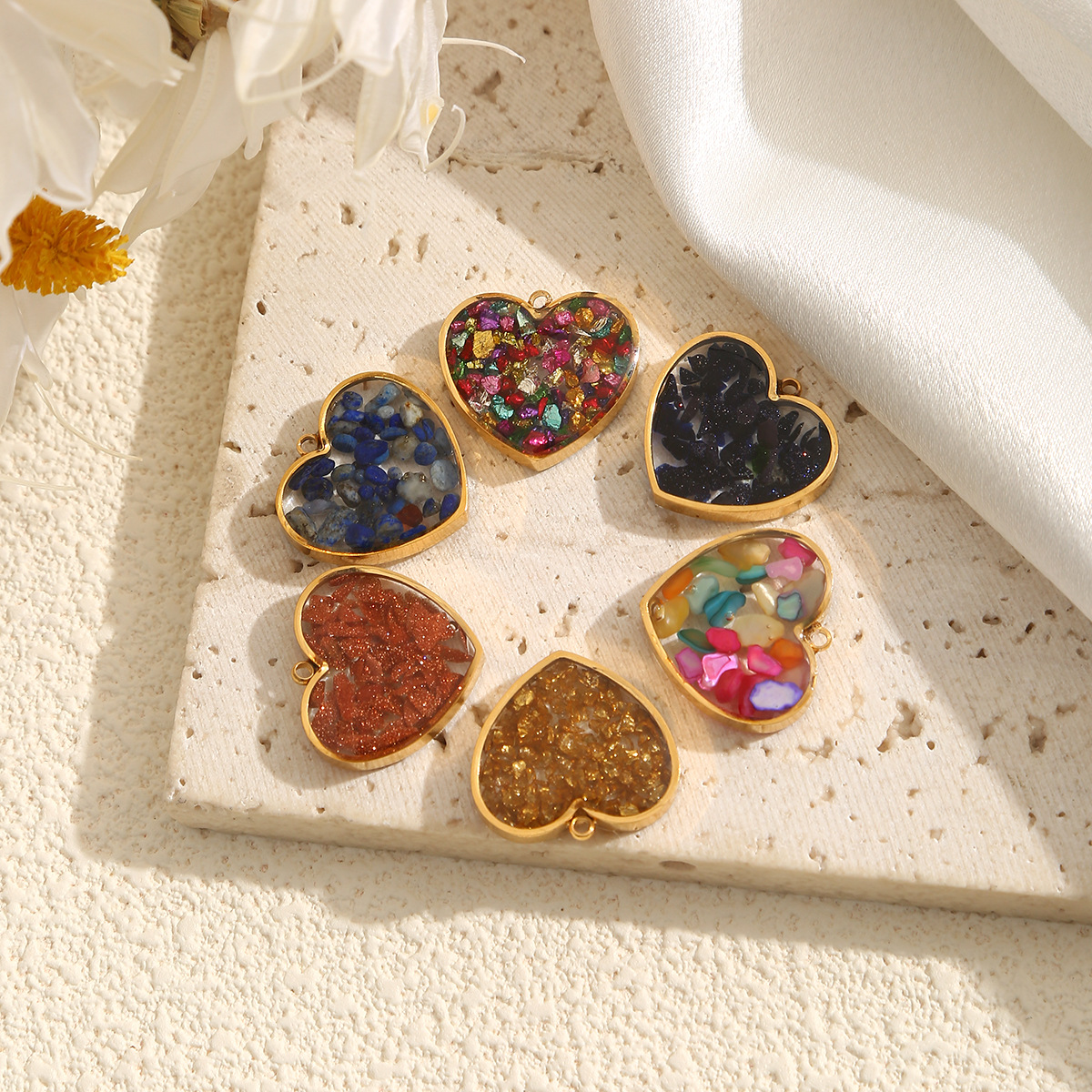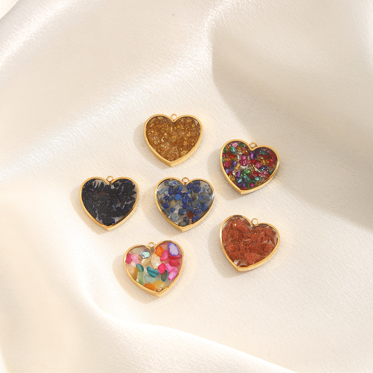 Gemstone Pendants Jewelry, 304 Stainless Steel, with Natural Gravel & Gold Foil, Heart, plated, DIY & epoxy gel, more colors for choice, 3PCs/Bag, Sold By Bag