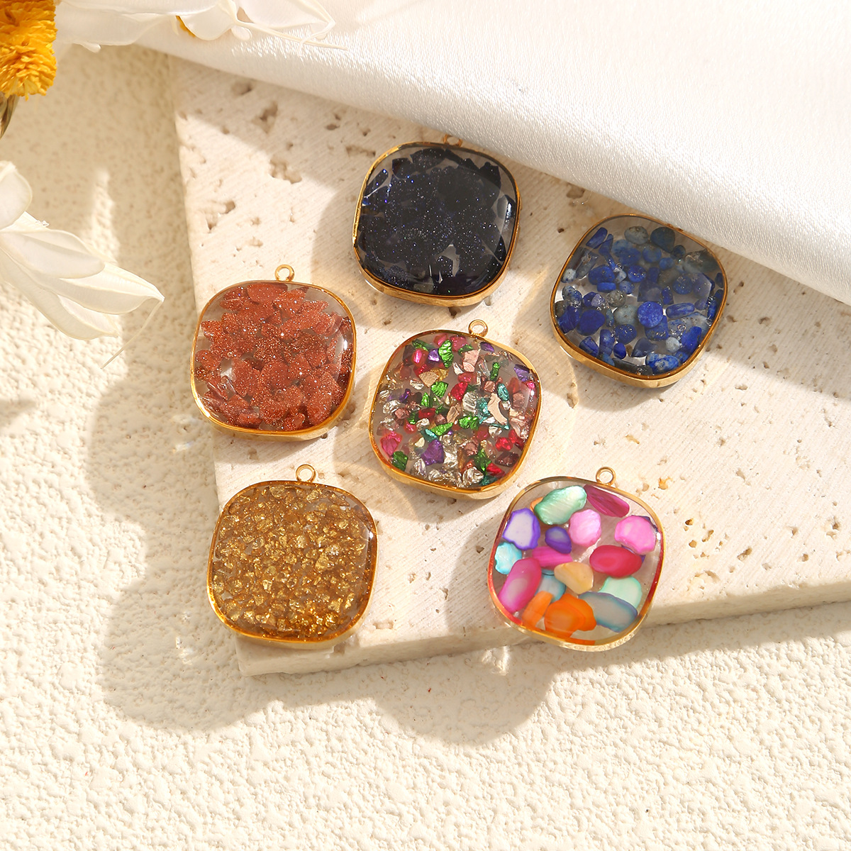 - Brass Pendant, with Gemstone, plated