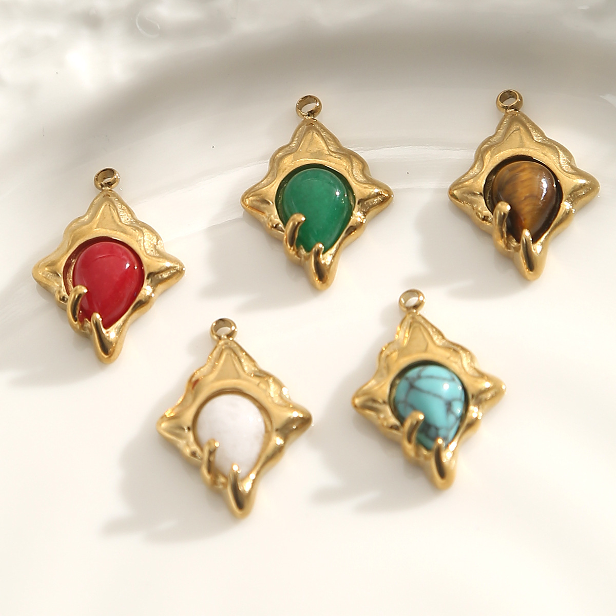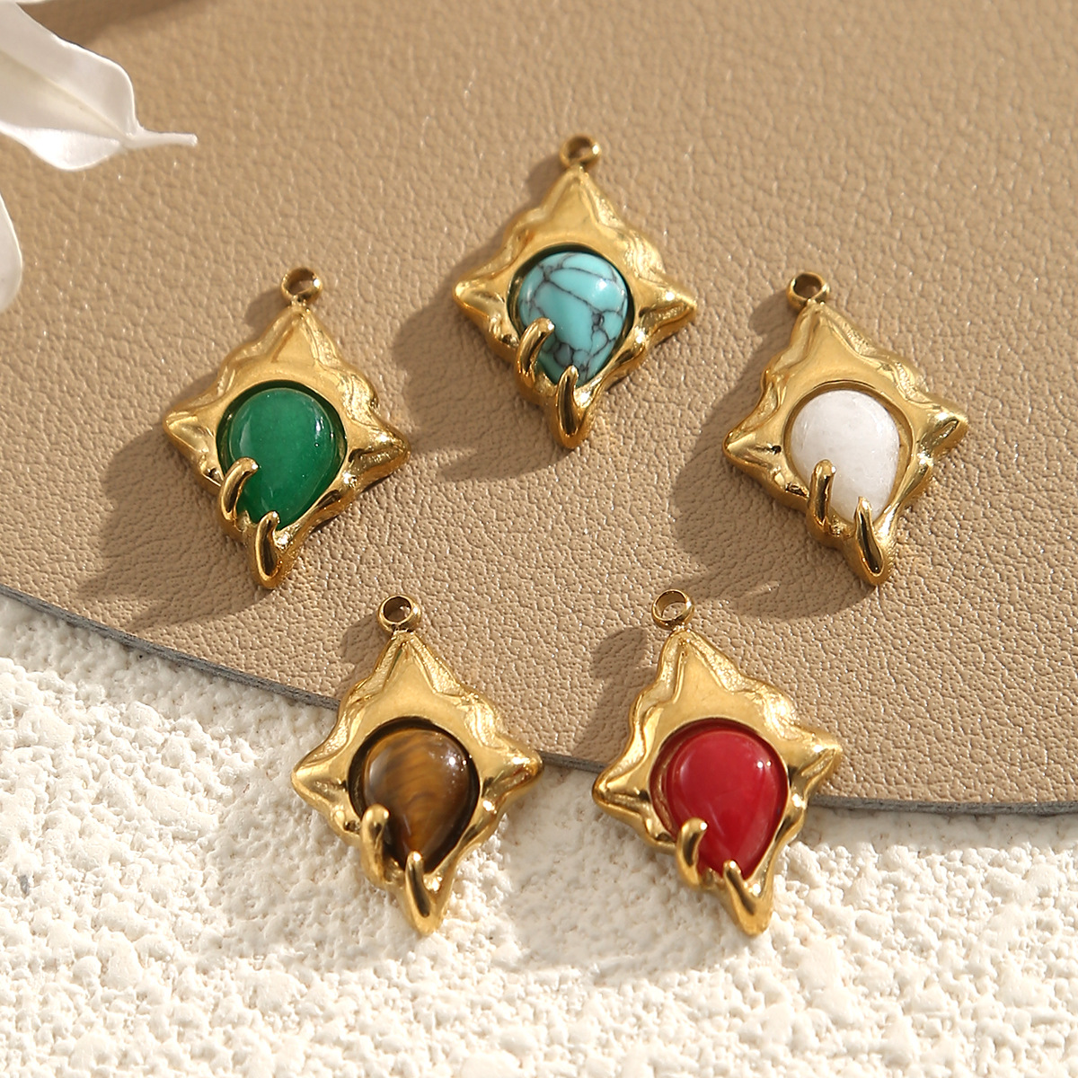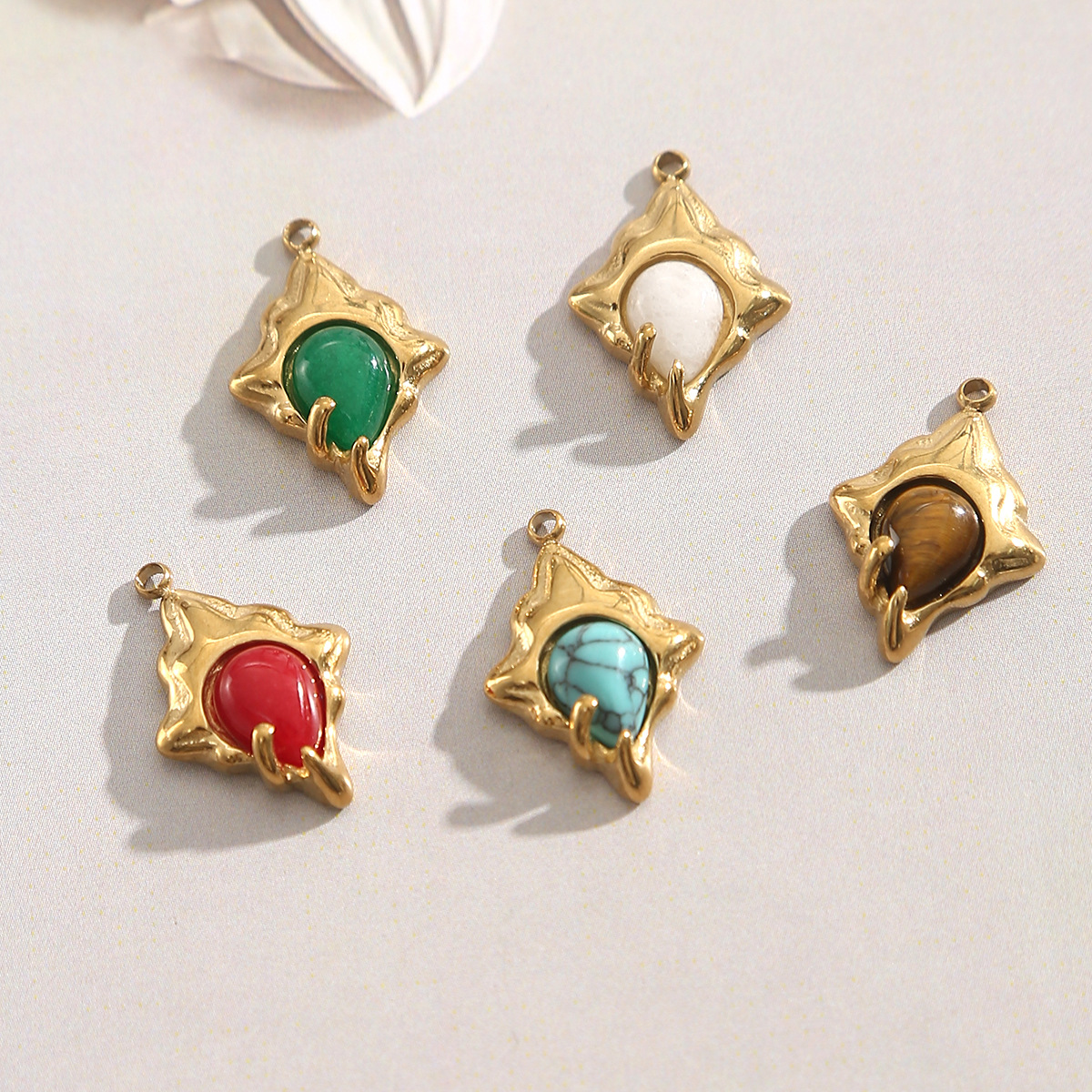 Gemstone Pendants Jewelry, 304 Stainless Steel, with Natural Stone, plated, DIY, more colors for choice, 10PCs/Bag, Sold By Bag