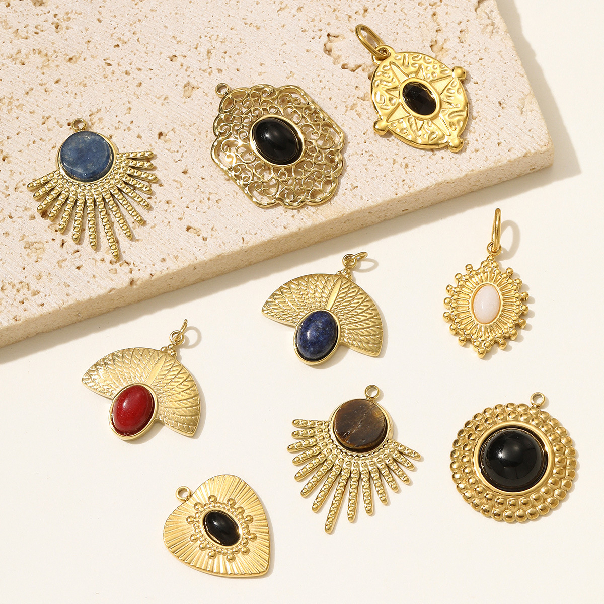 - Gemstone Pendants Jewelry, Brass, with Natural Stone