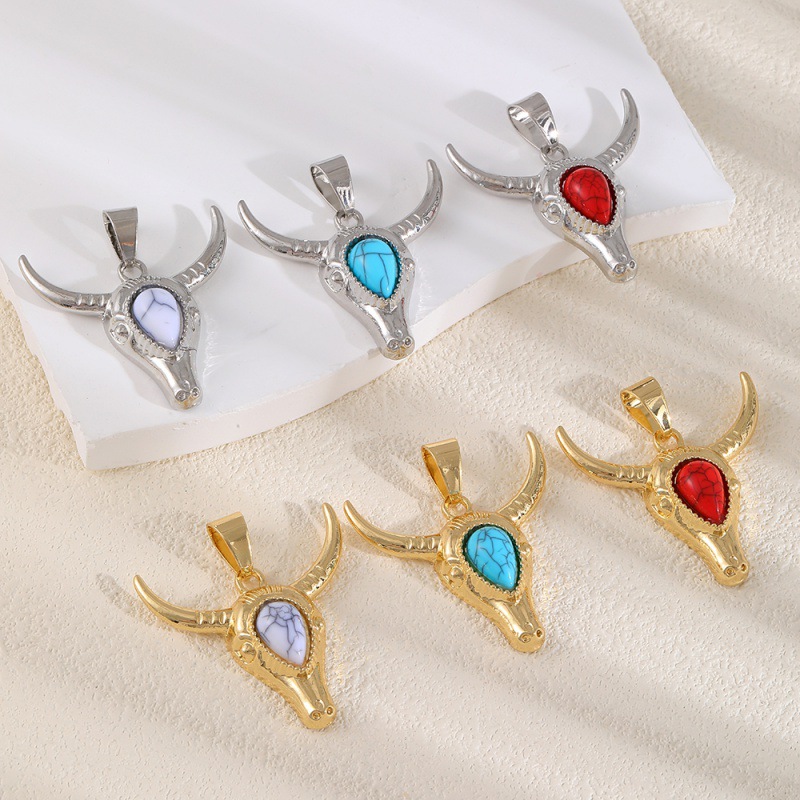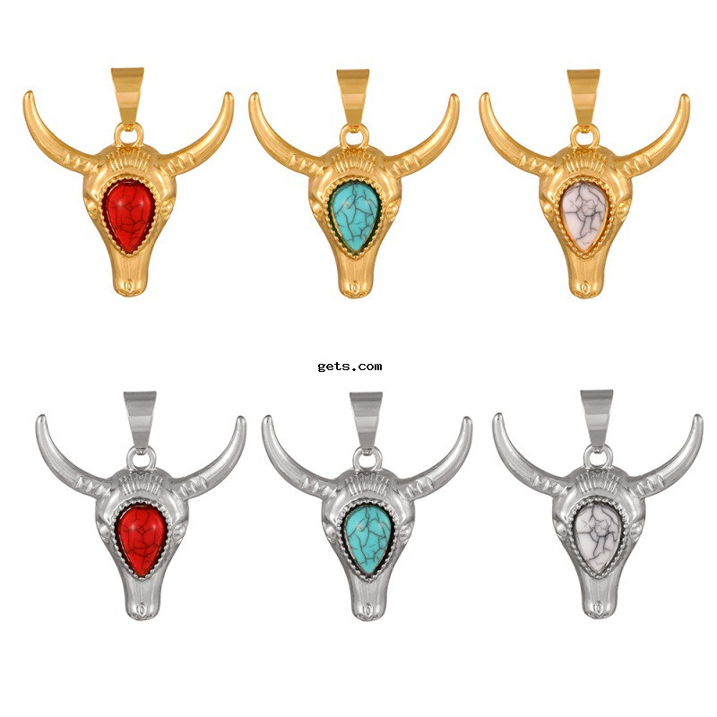 Gemstone Pendants Jewelry, Brass, with Gemstone, plated, DIY, more colors for choice, 56x58mm, Sold By PC