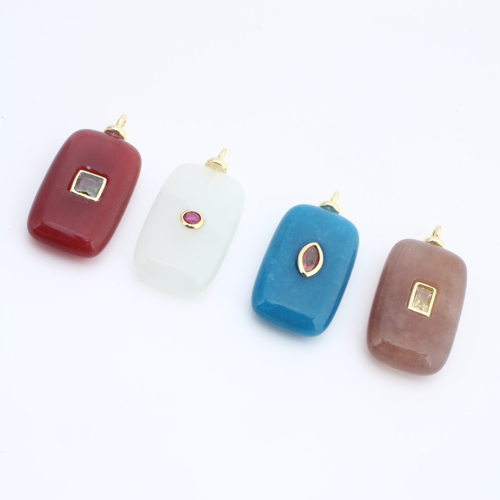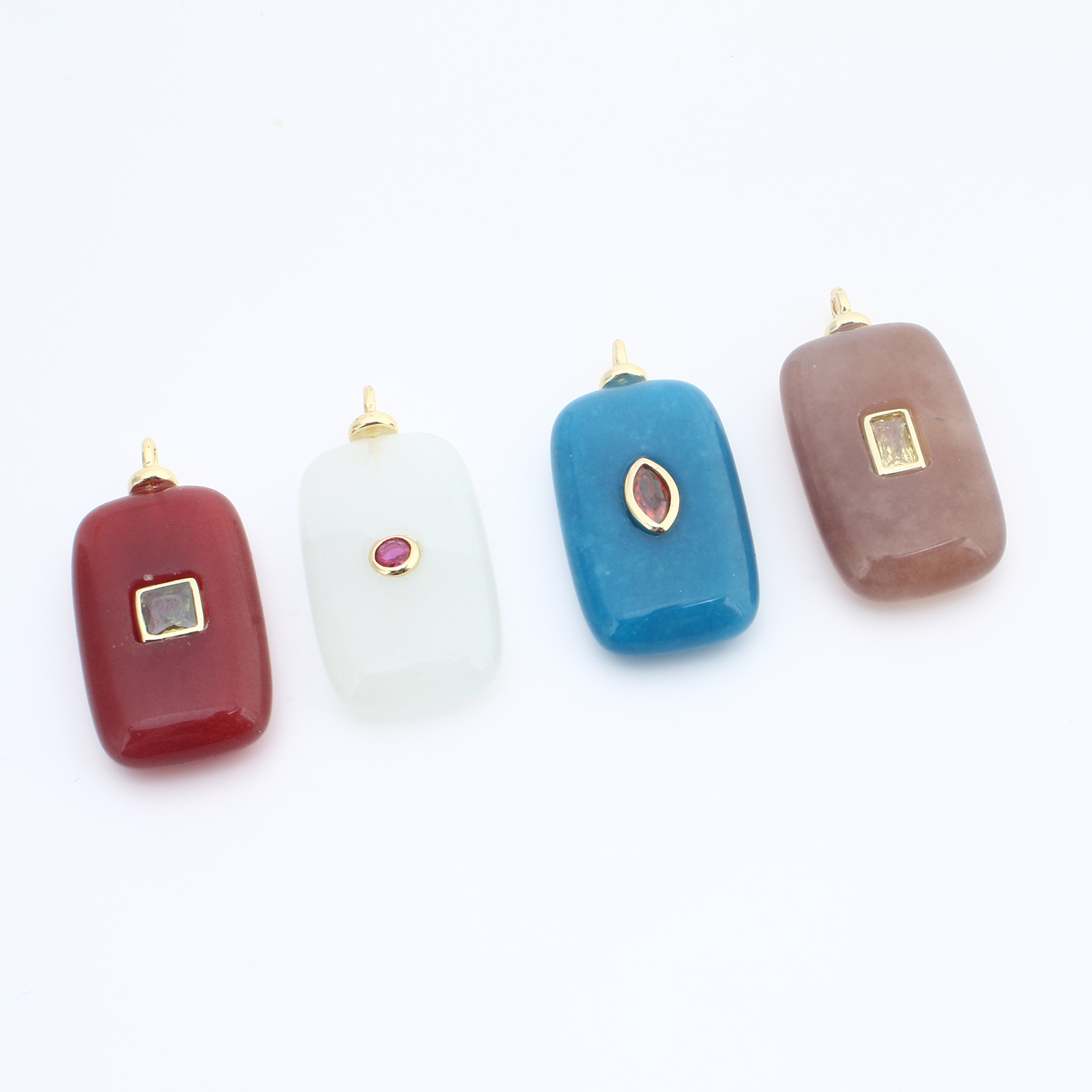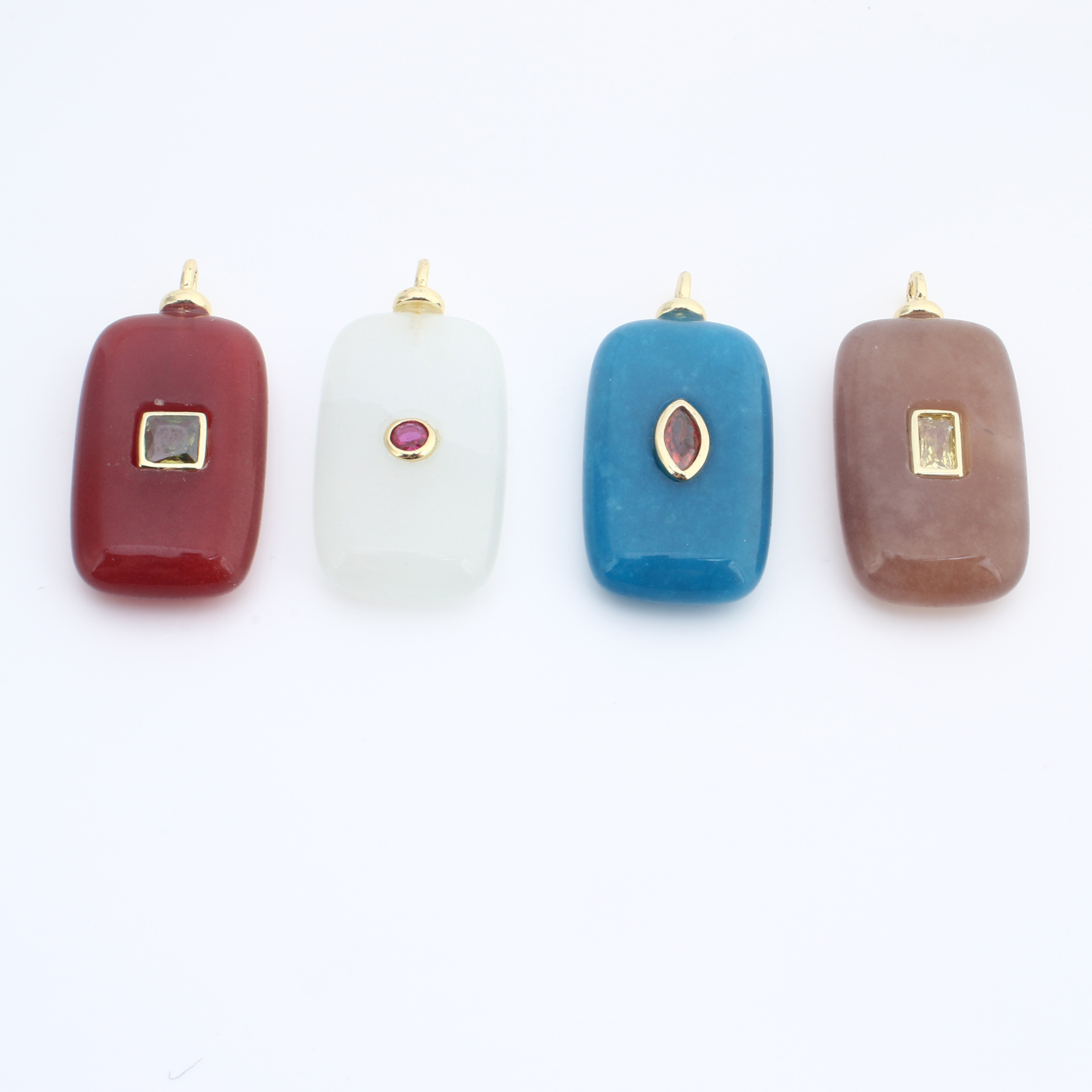 Gemstone Pendants Jewelry, Brass, with Gemstone, plated, DIY & micro pave cubic zirconia, more colors for choice, nickel, lead & cadmium free, 30x15x6mm, Sold By PC