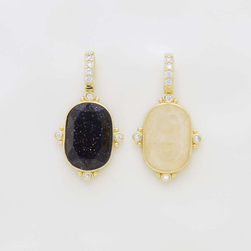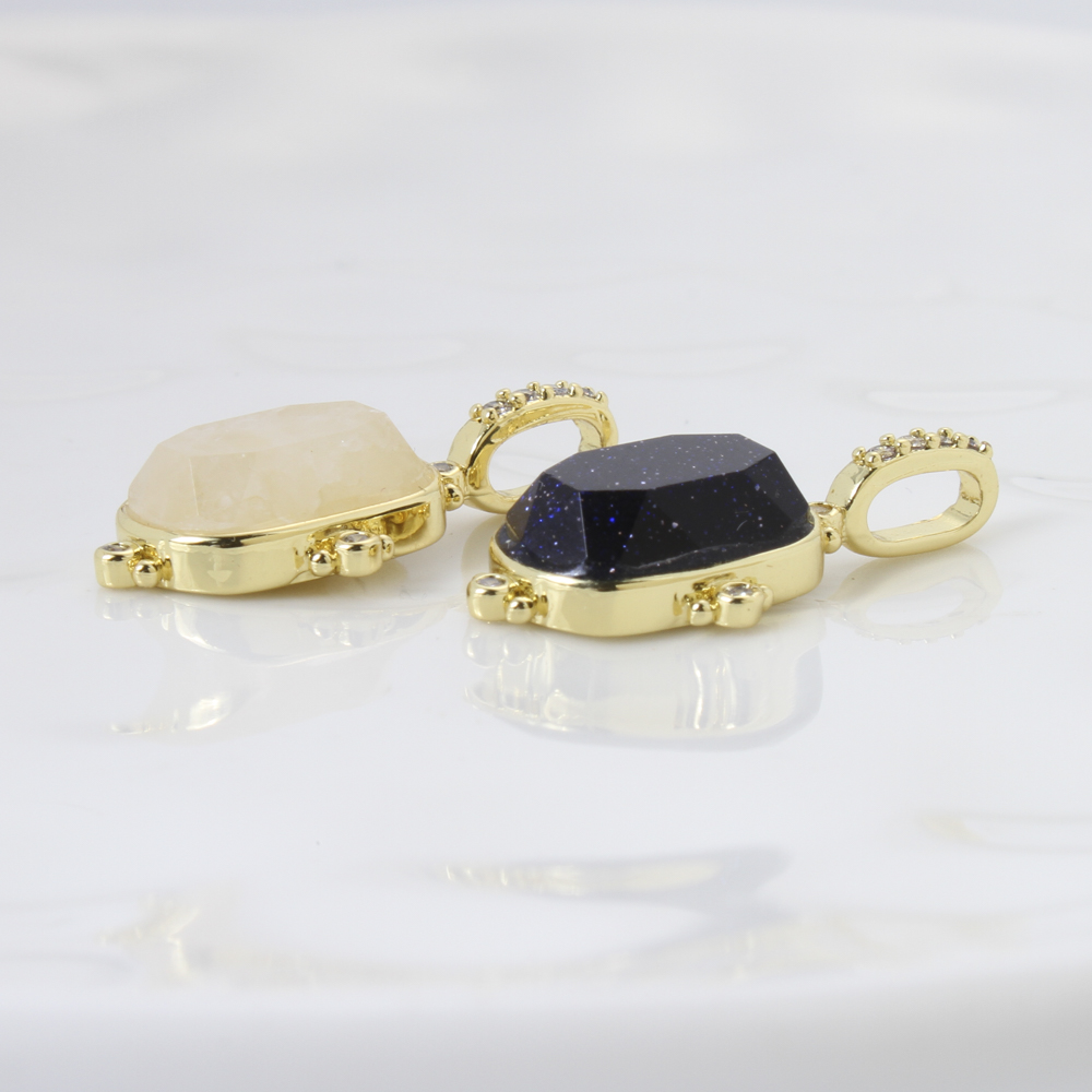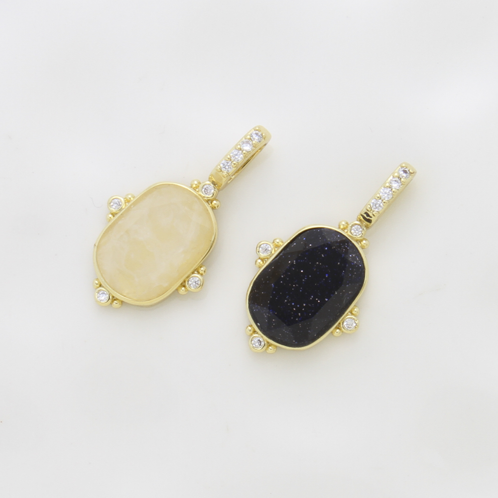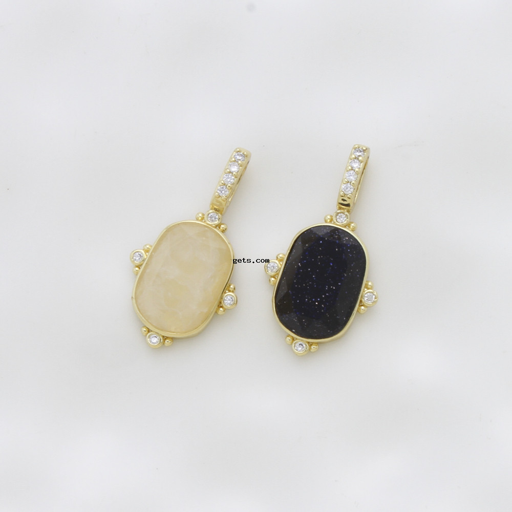 Gemstone Pendants Jewelry, Brass, with Natural Stone, plated, DIY & micro pave cubic zirconia, more colors for choice, 24.20x13x5mm, Sold By PC
