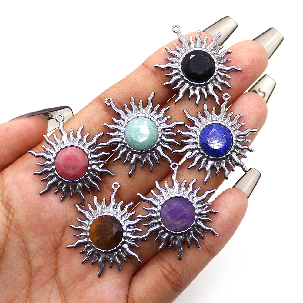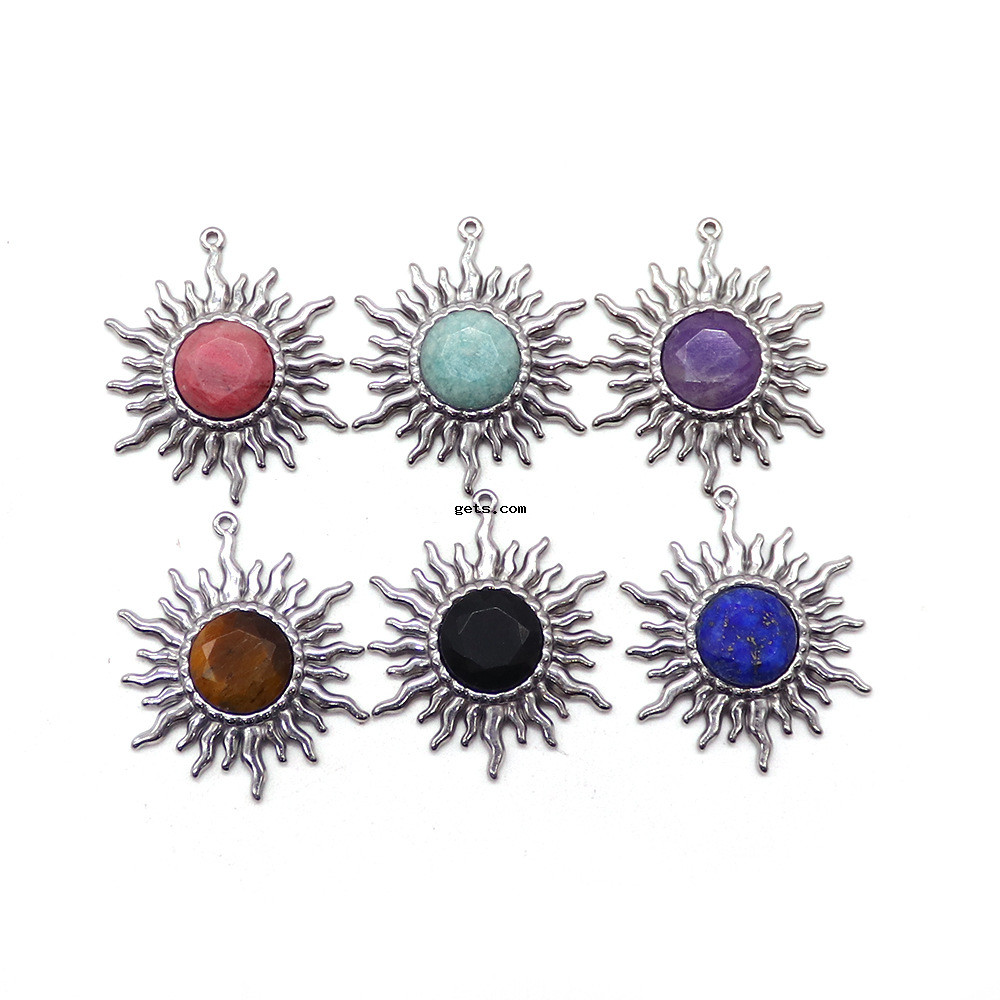 Gemstone Pendants Jewelry, Brass, with Natural Stone, Sun, gold color plated, DIY, more colors for choice, nickel, lead & cadmium free, 25x30mm, Sold By PC