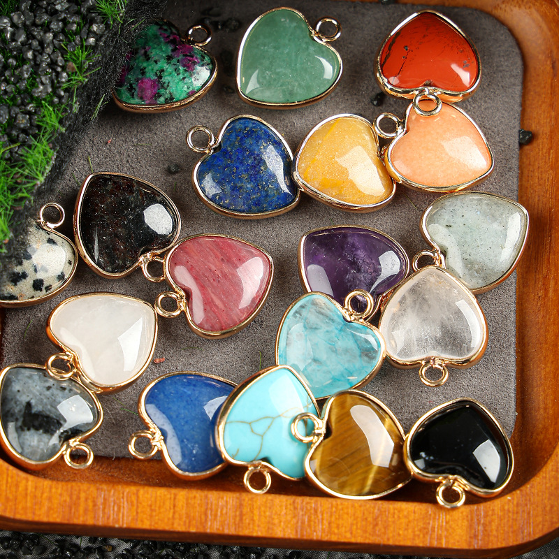 Gemstone Pendants Jewelry, Brass, with Natural Stone, Heart, plated, DIY & different materials for choice, 15x19mm, Sold By PC