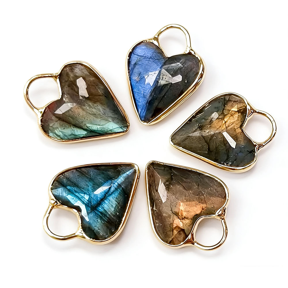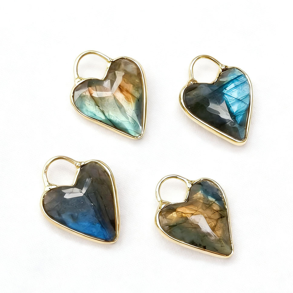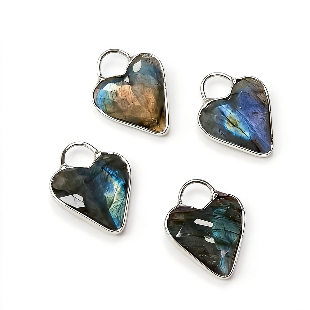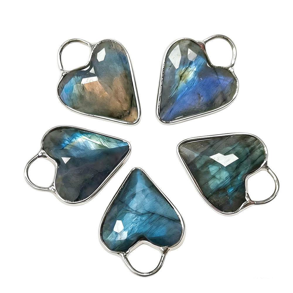 Gemstone Pendants Jewelry, Labradorite, with Tibetan Style, Heart, polished, random style & DIY, more colors for choice, 18mm, Sold By PC