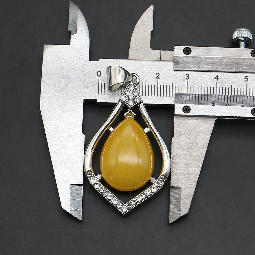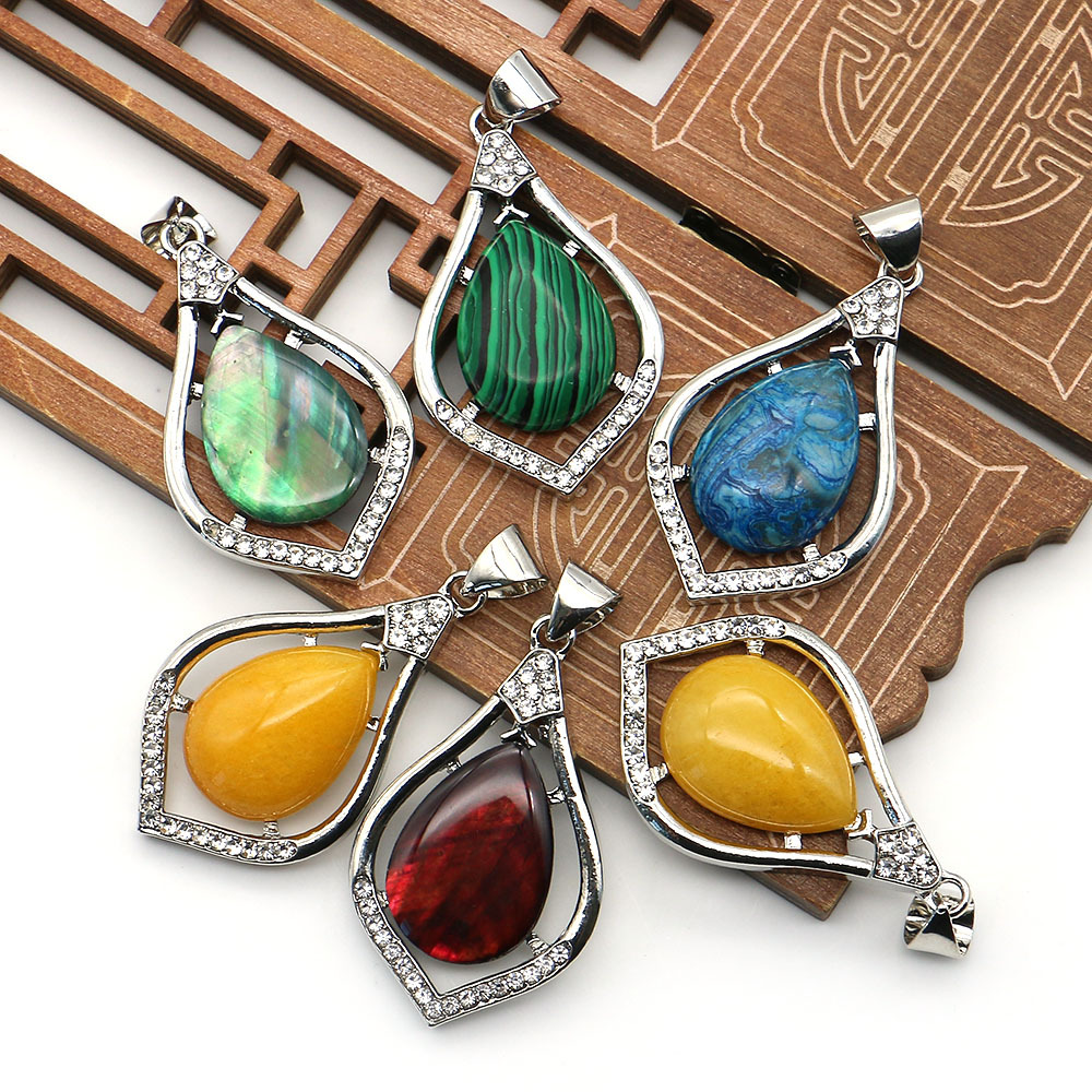 Gemstone Pendants Jewelry, with Brass, Teardrop, plated, DIY & different materials for choice & with rhinestone, 73x47mm, Sold By PC