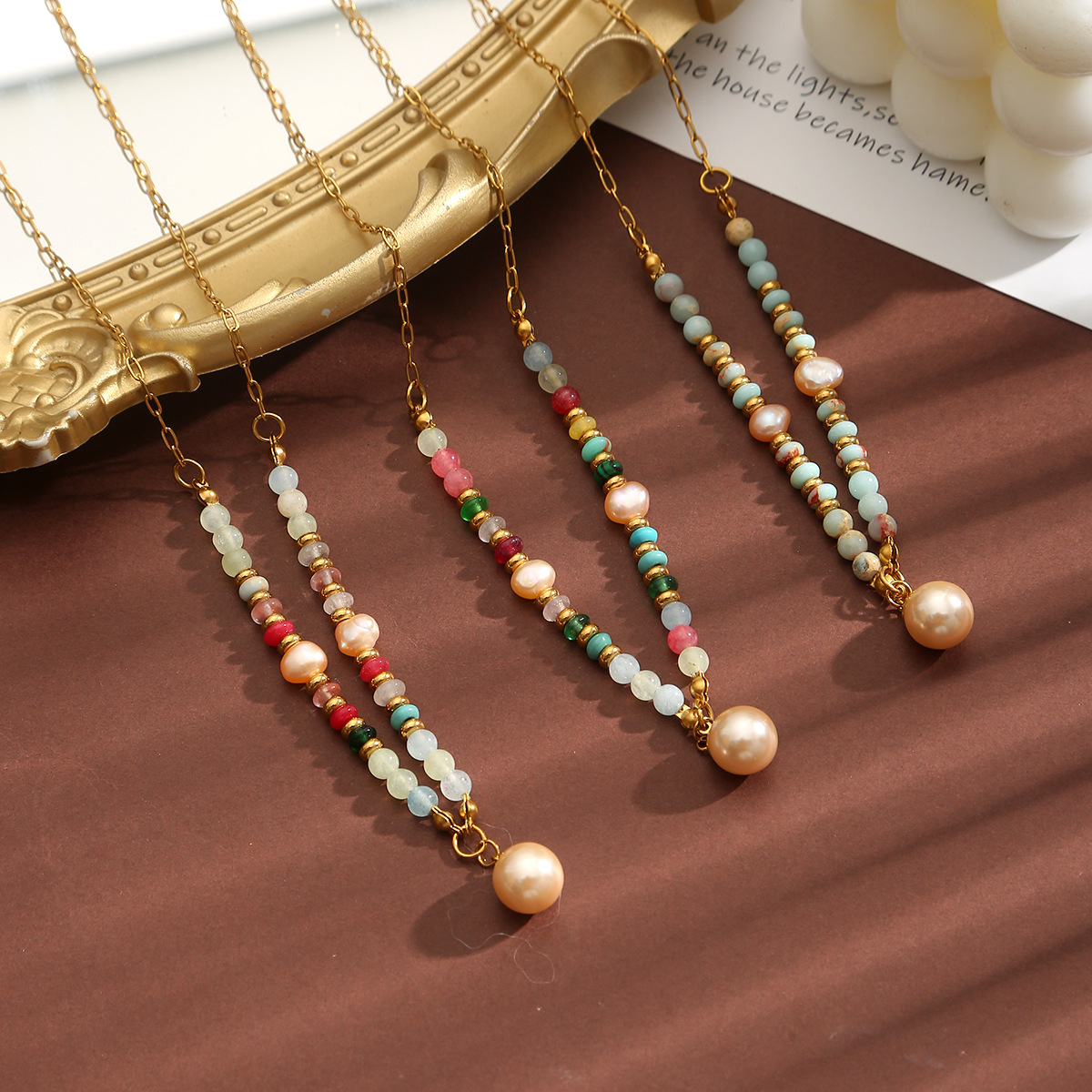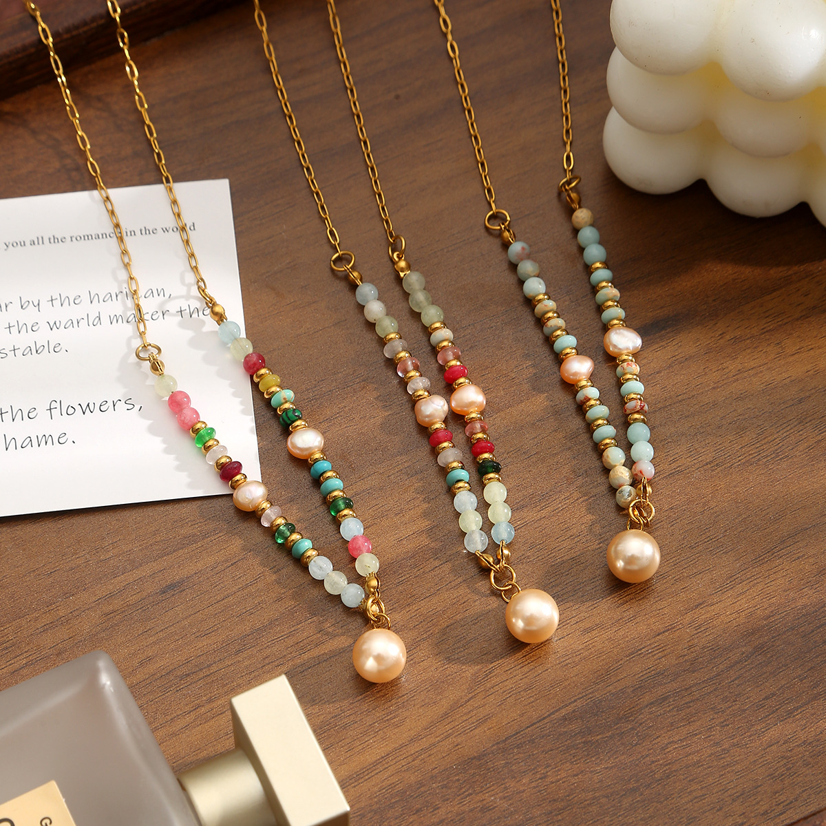 - Glass Beads Necklaces, Glass Pearl, with Titanium Steel