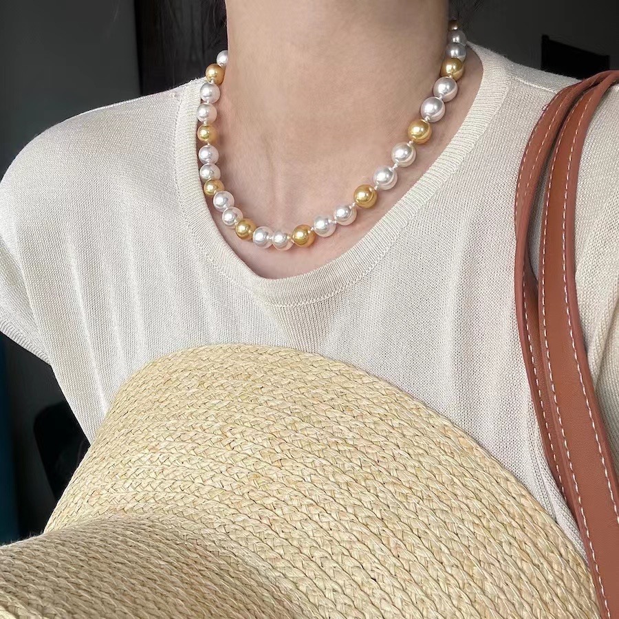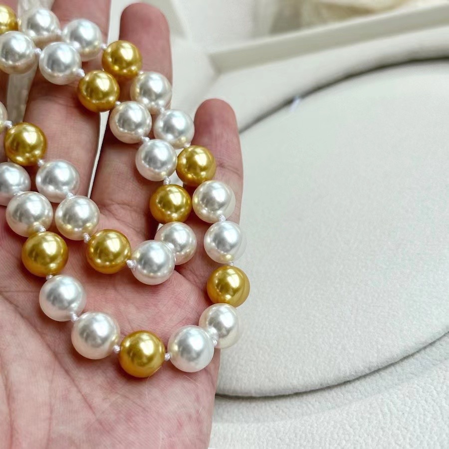 - Glass Pearl Necklace, with 5cm extender chain, handmade