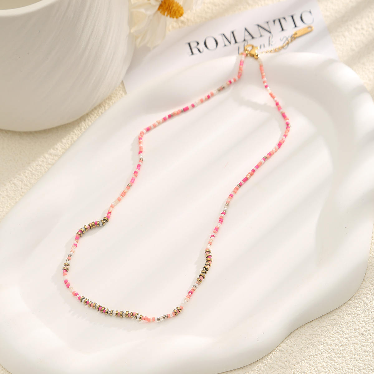 - Glass Seed Beads Necklace, Seedbead, Flower