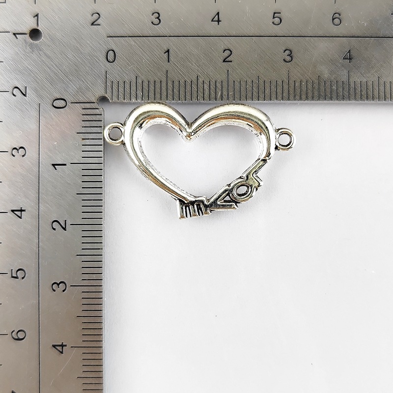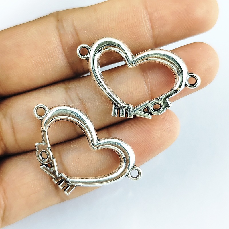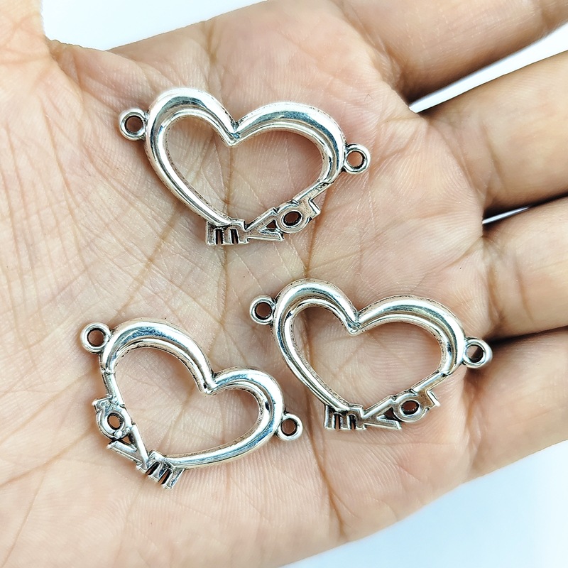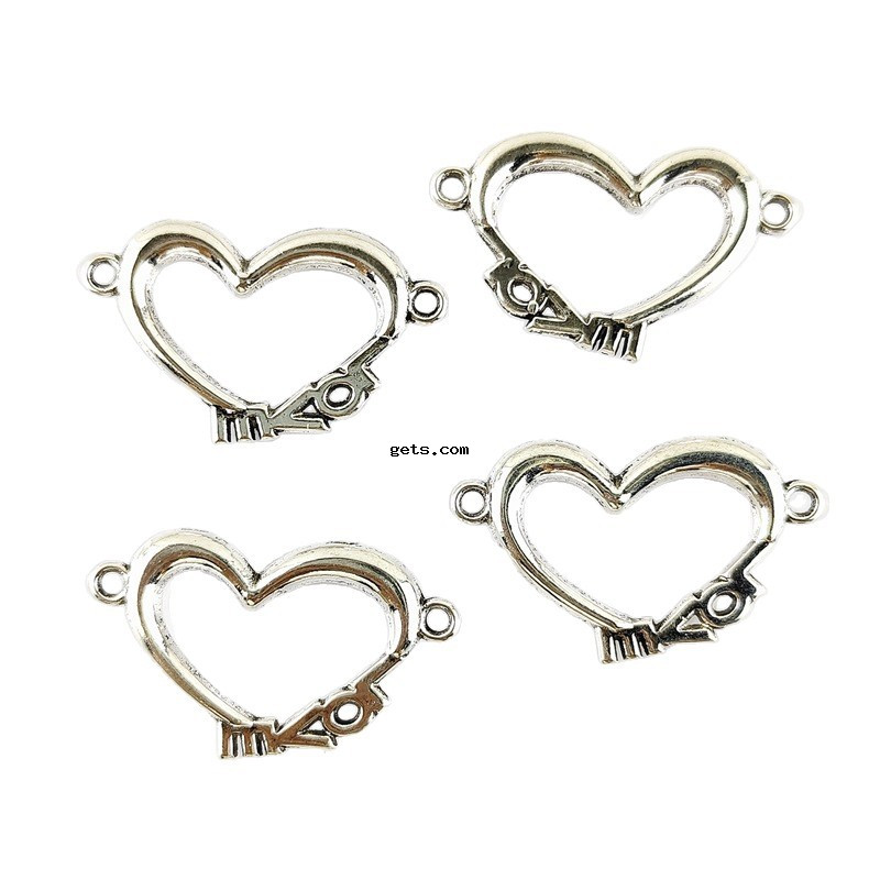 - Heart Tibetan Style Connector, antique silver color plated, vintage & DIY & 1/1 loop & hollow
