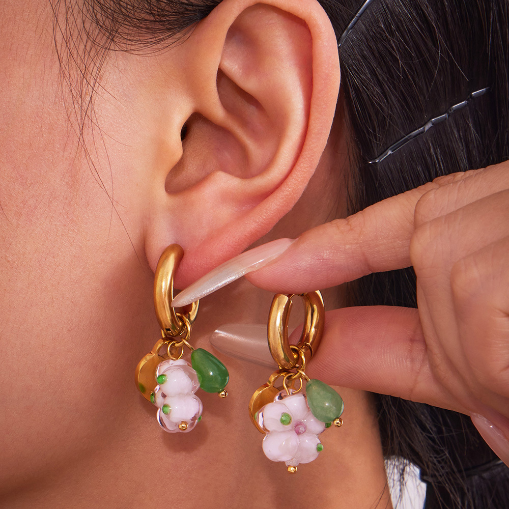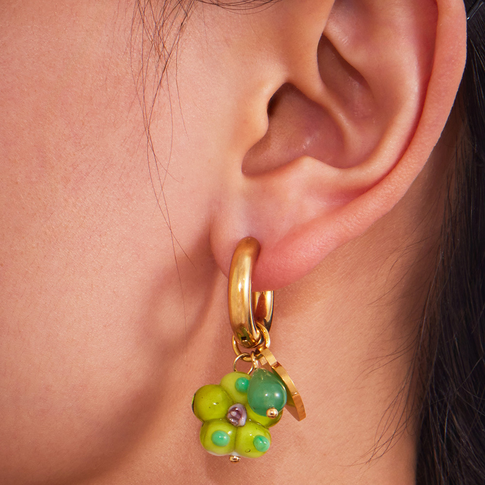 - Huggie Hoop Drop Earring, Acetate, with Brass