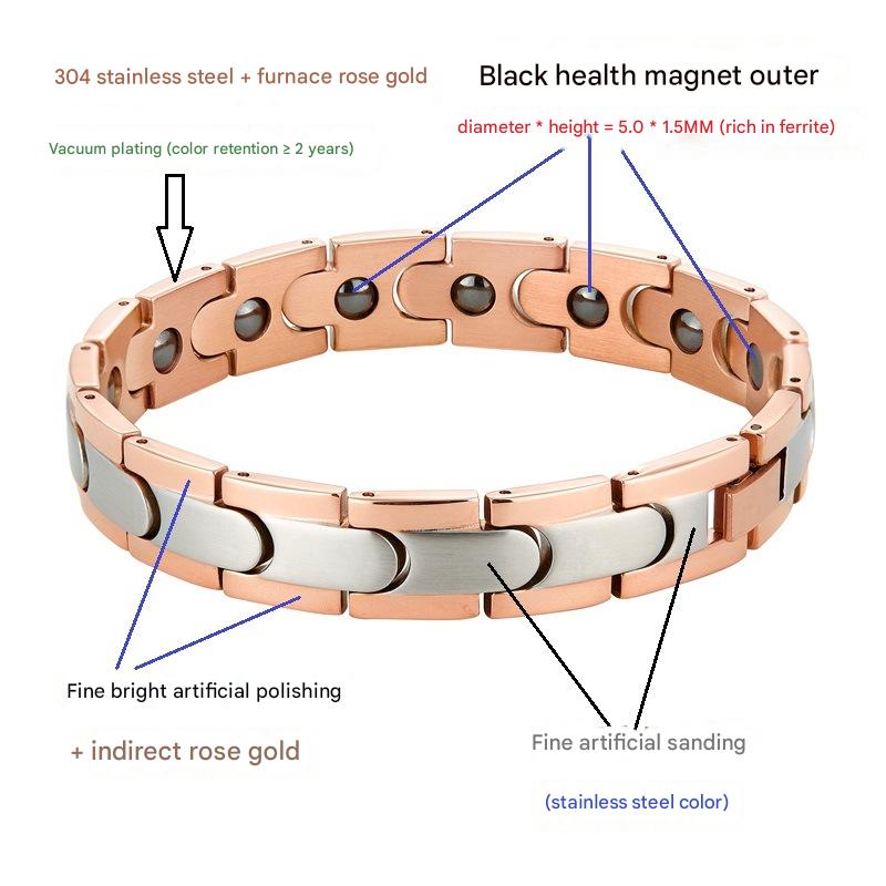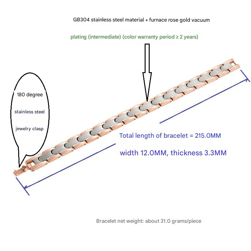 304 Stainless Steel Bracelet, with Black Magnetic Stone, Vacuum Ion Plating, fashion jewelry & for man, Length:Approx 8.5 Inch, Sold By PC