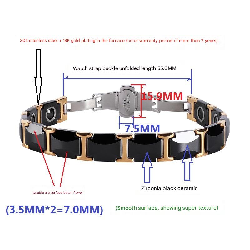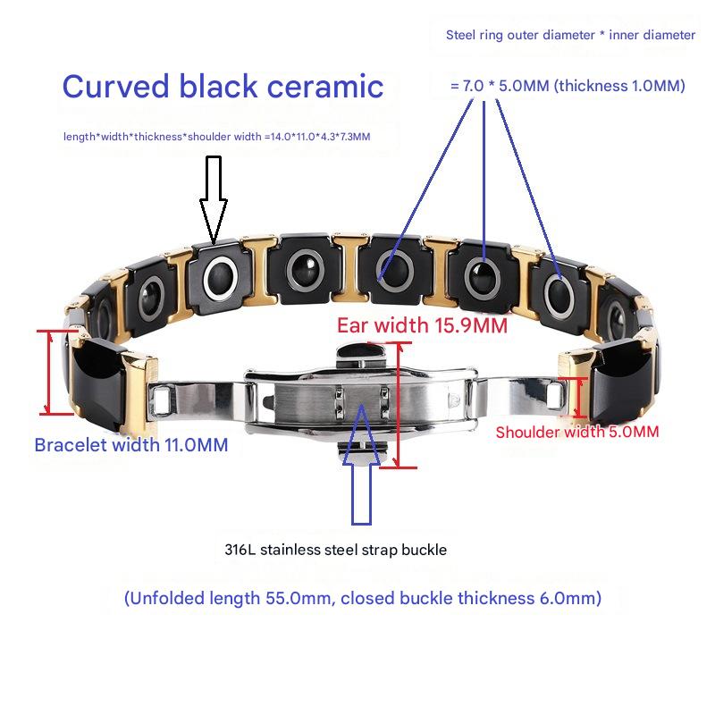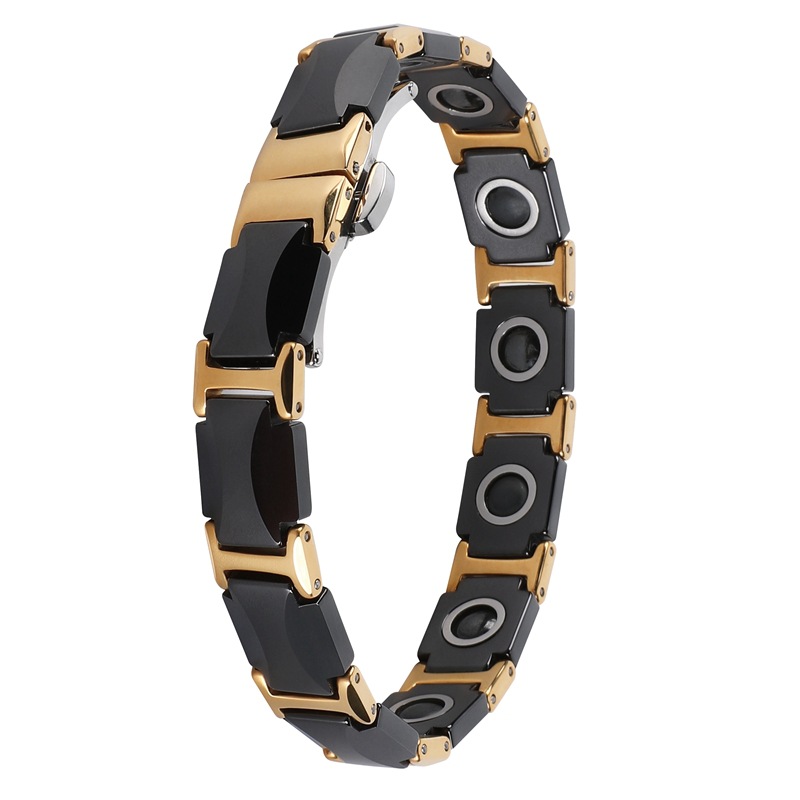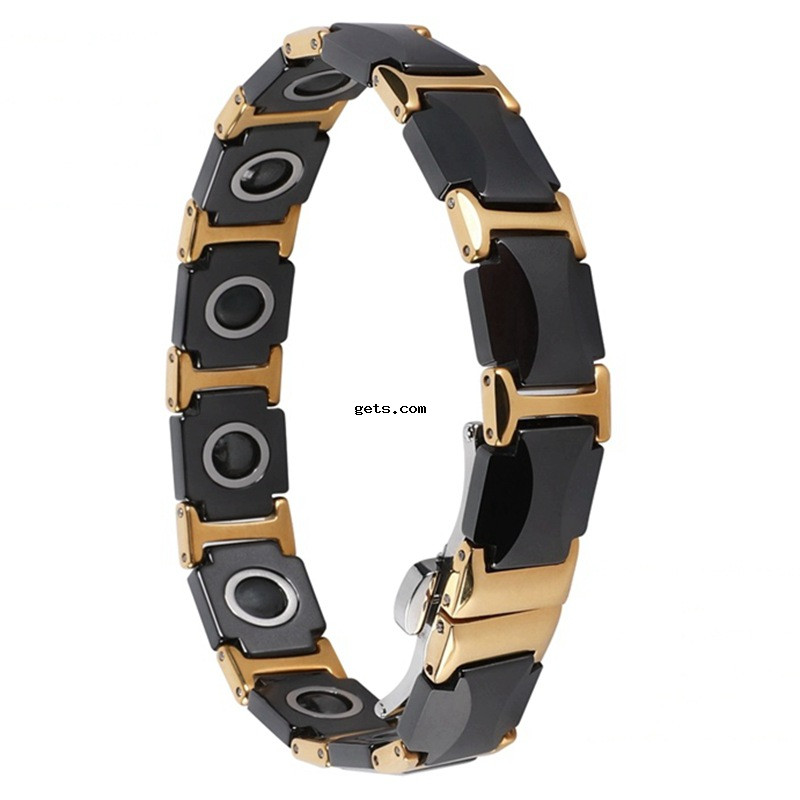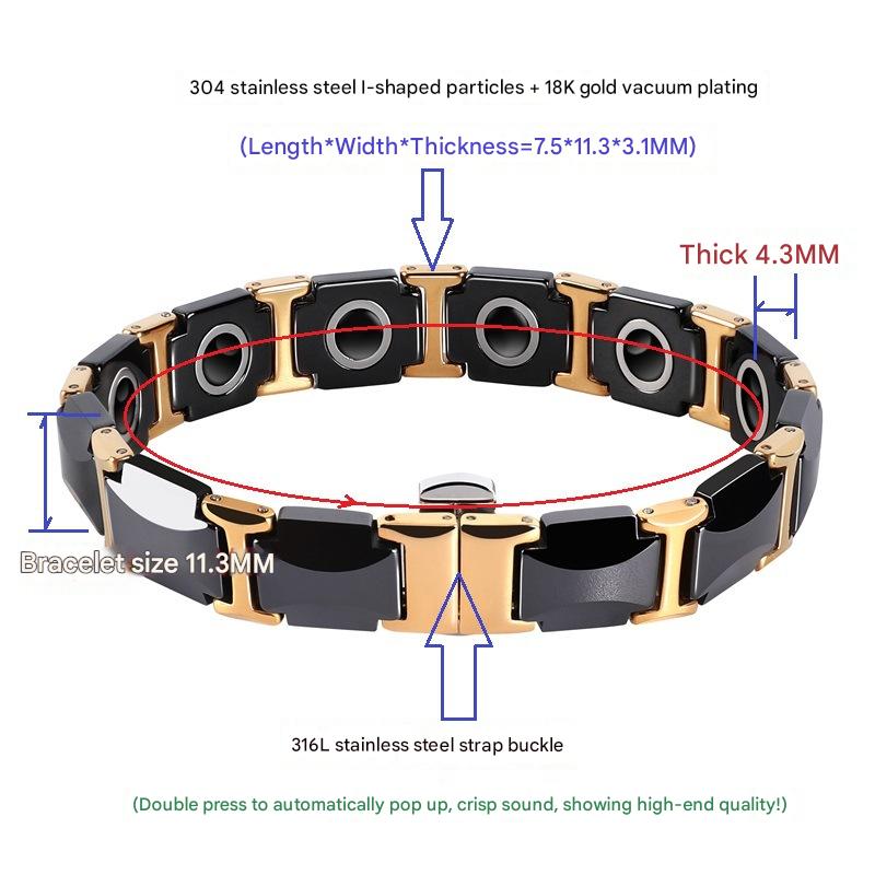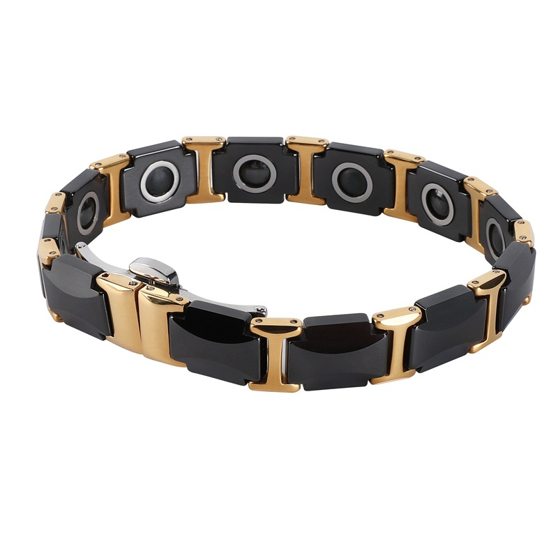 304 Stainless Steel Bracelet, with Black Magnetic Stone & Porcelain & 316L Stainless Steel, Vacuum Ion Plating, fashion jewelry & for man, Length:Approx 8 Inch, Sold By PC