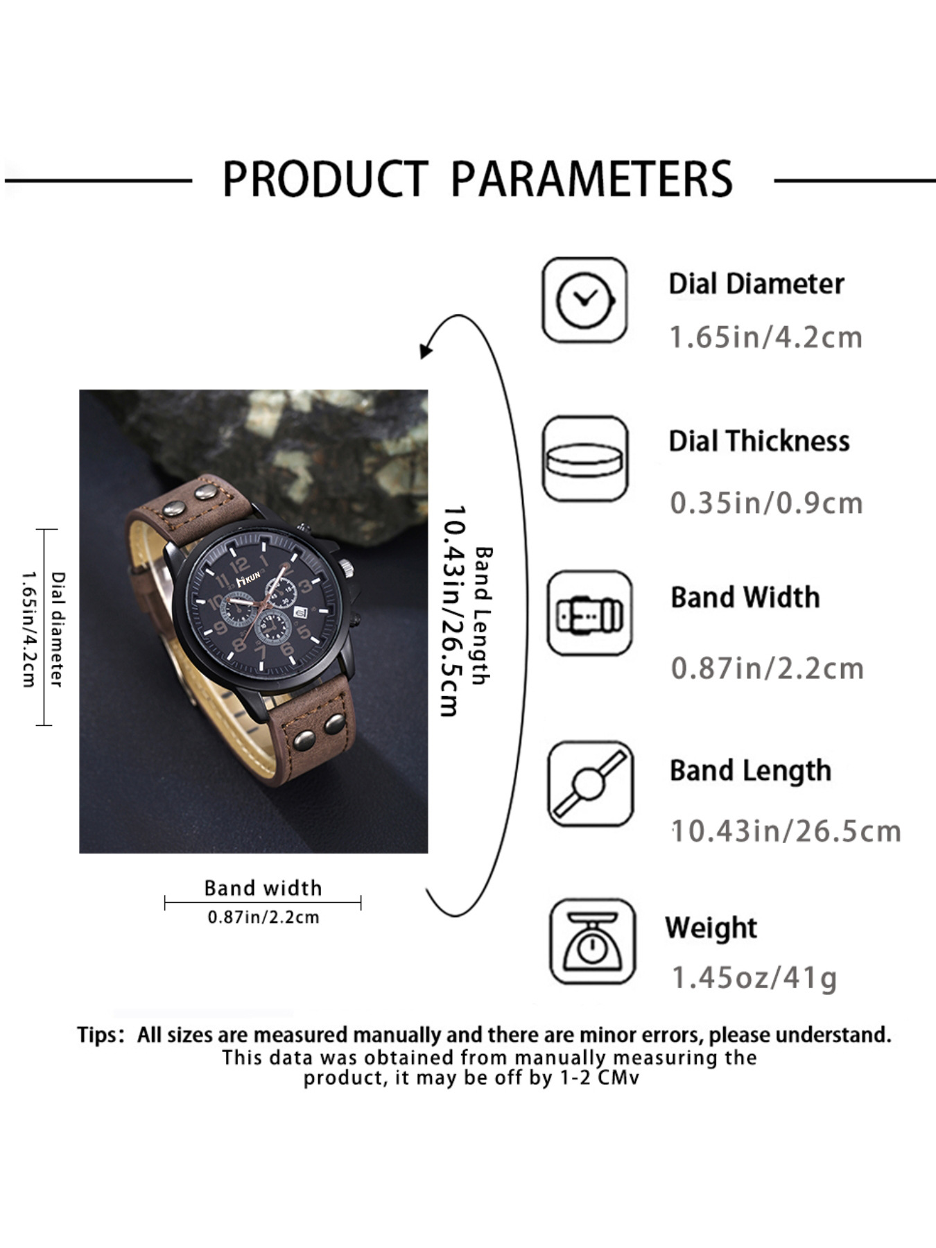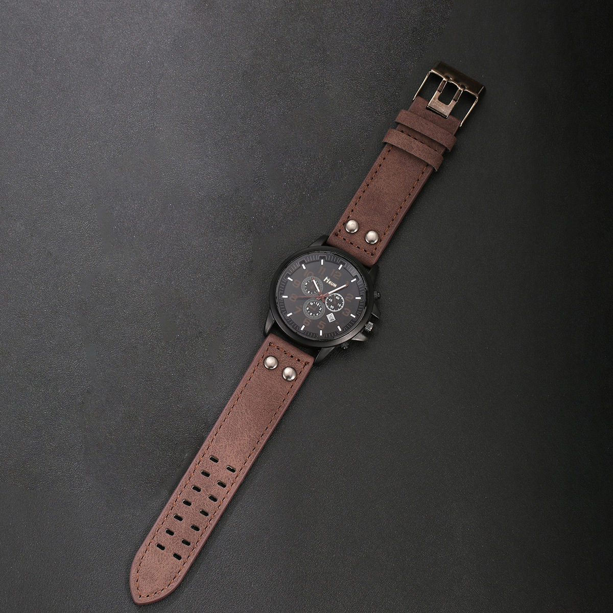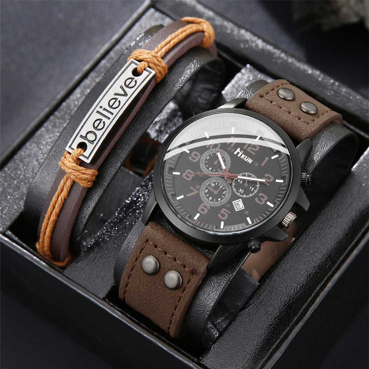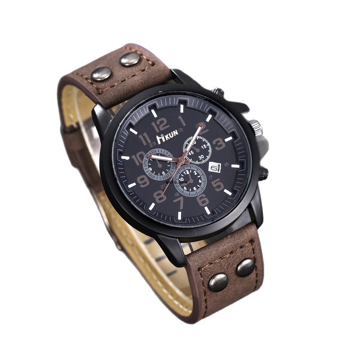 - Men Wrist Watch, Leather, with Glass & Stainless Steel