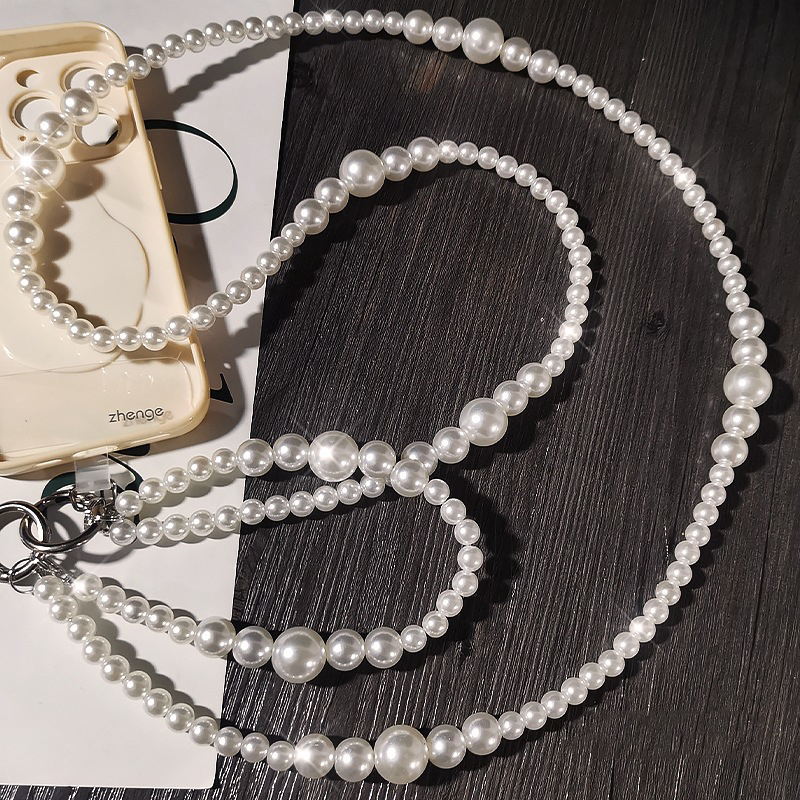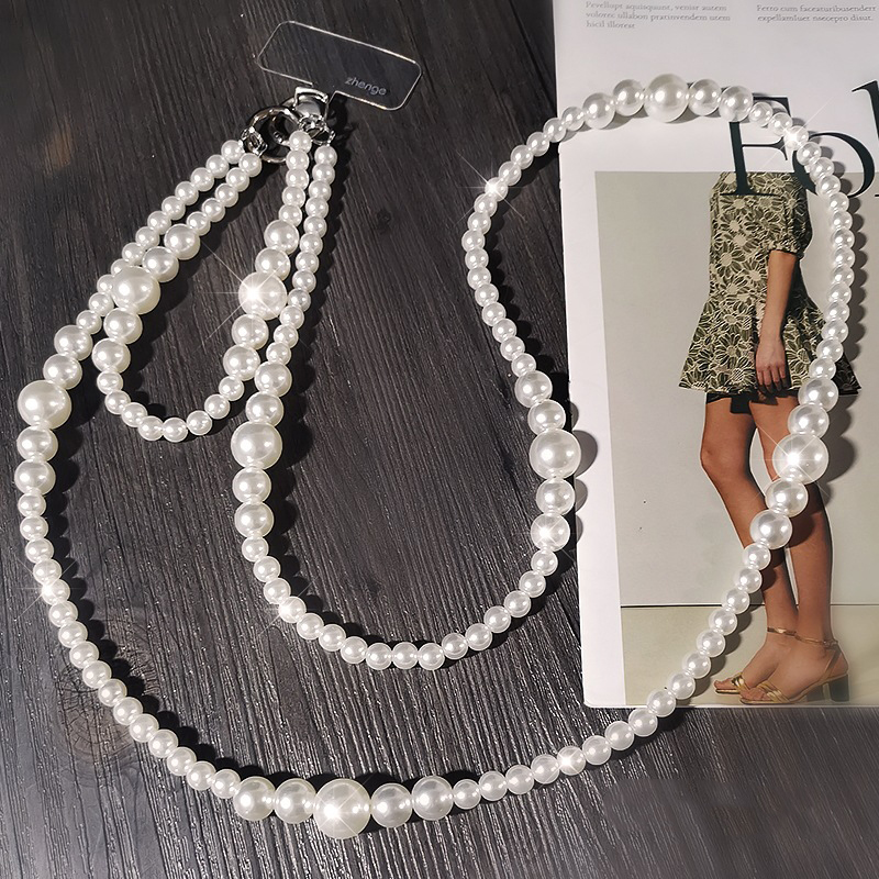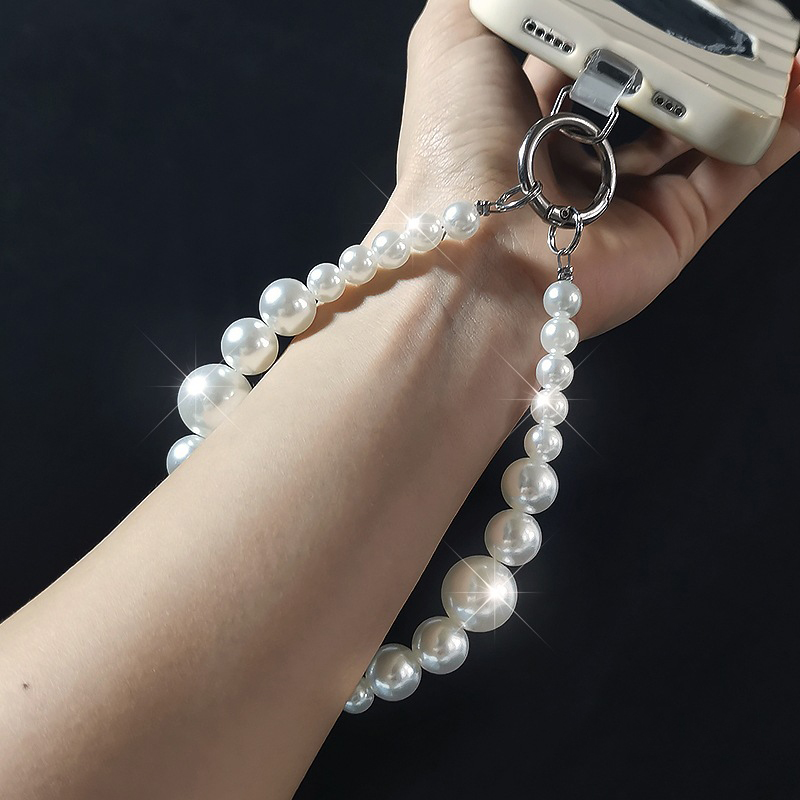 Plastic Pearl Cell Phone Chain, with Tibetan Style, handmade, for woman, white, Sold By PC