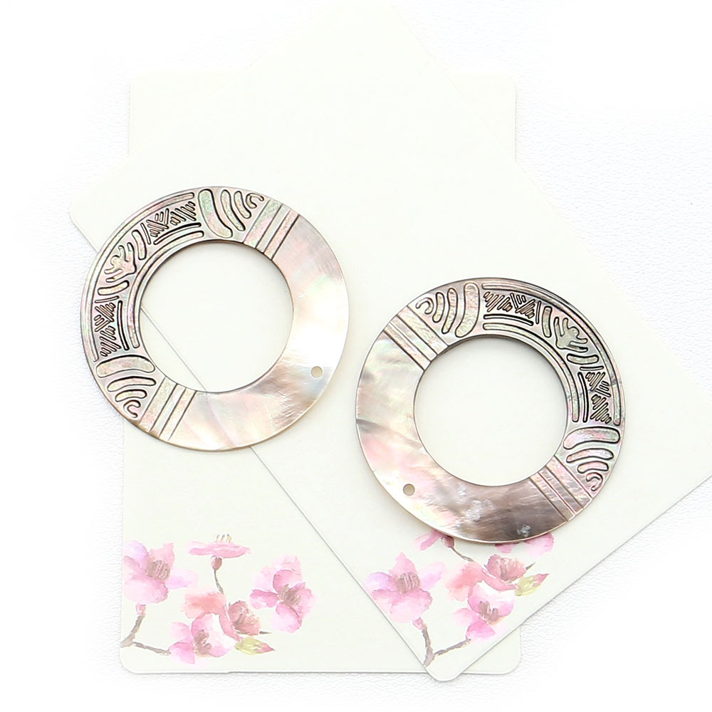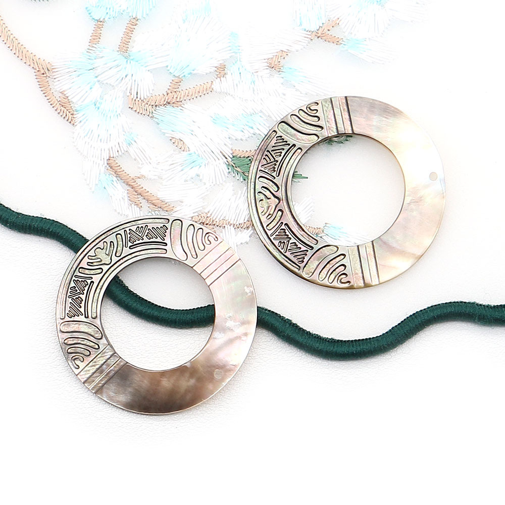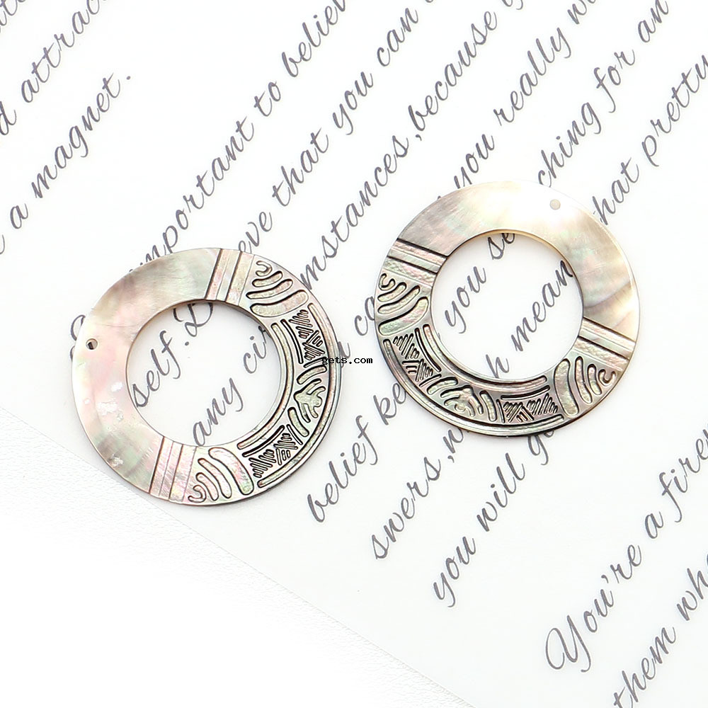 - Natural Black Shell Pendants, with White Shell & Brass, Flat Round