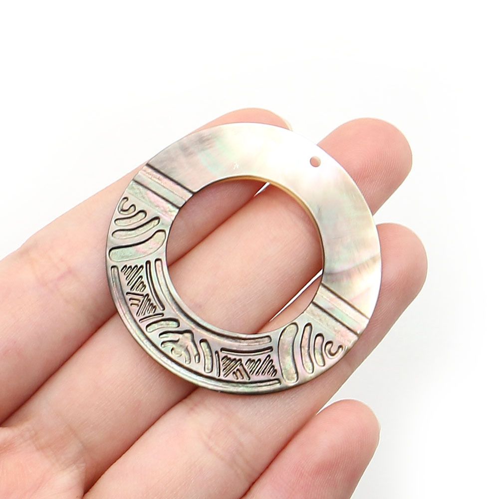 - Black Shell Pendant, with White Shell & Brass, Flat Oval