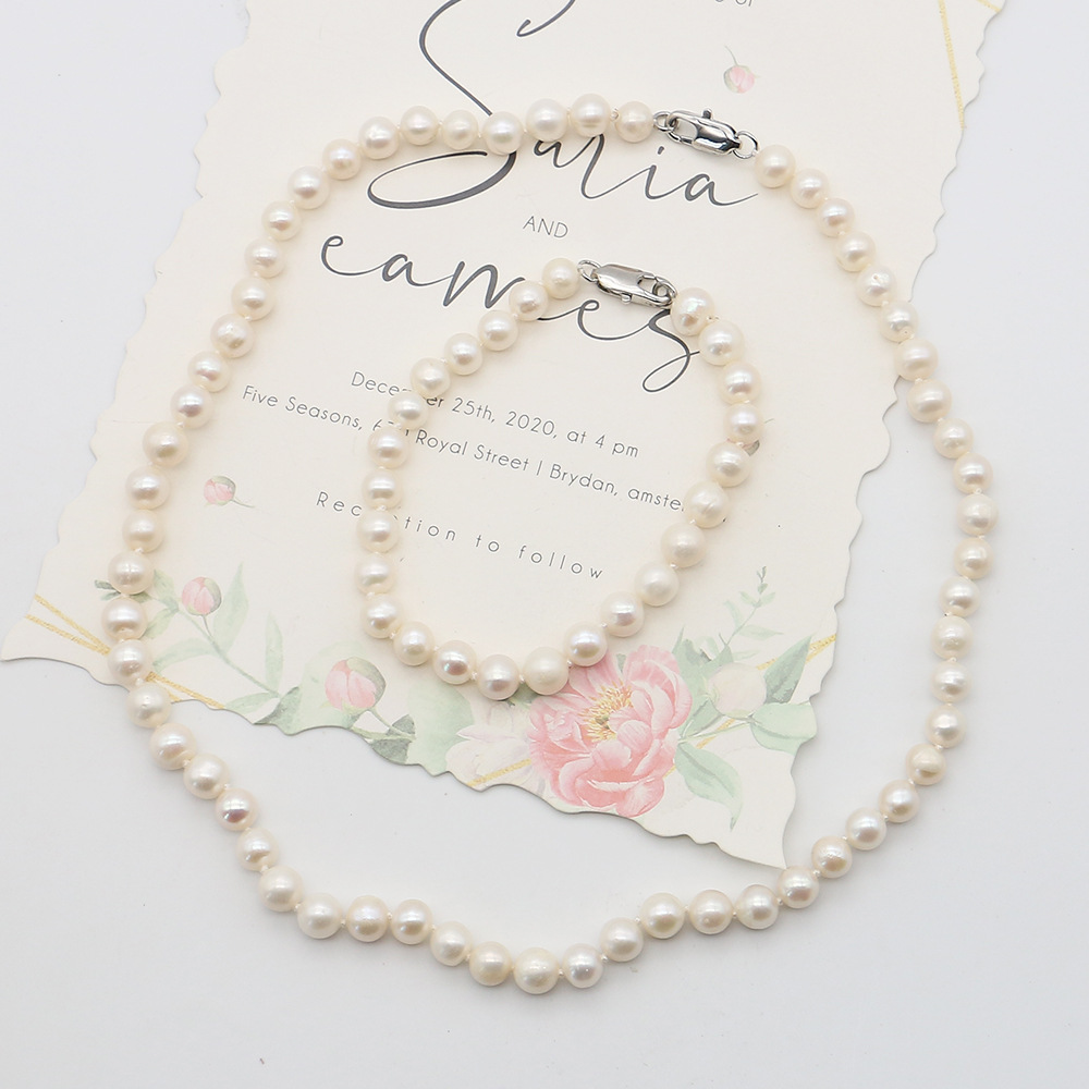 - Natural Cultured Freshwater Pearl Jewelry Sets, bracelet & necklace, brass lobster clasp