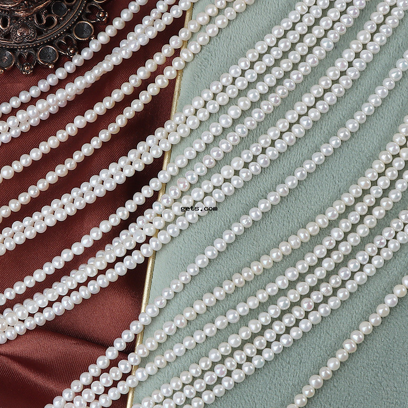 Natural Freshwater Pearl Loose Beads, Slightly Round, DIY, white, 3-3.5mm, Sold Per 40 cm Strand