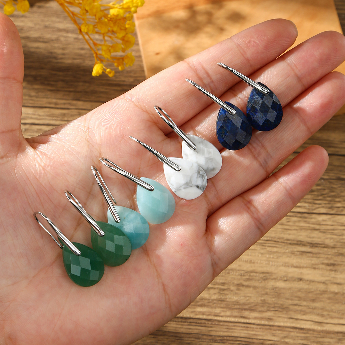 - Natural Gemstone Earrings, Natural Stone, iron post pin