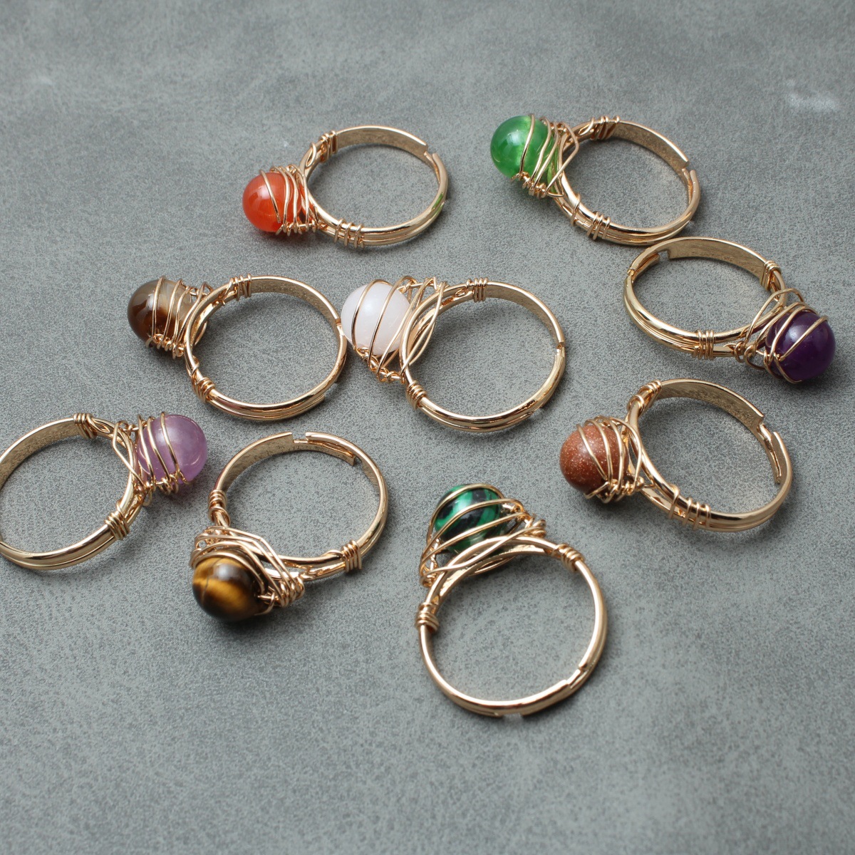 - Natural Gemstone Finger Ring, Quartz, with Brass