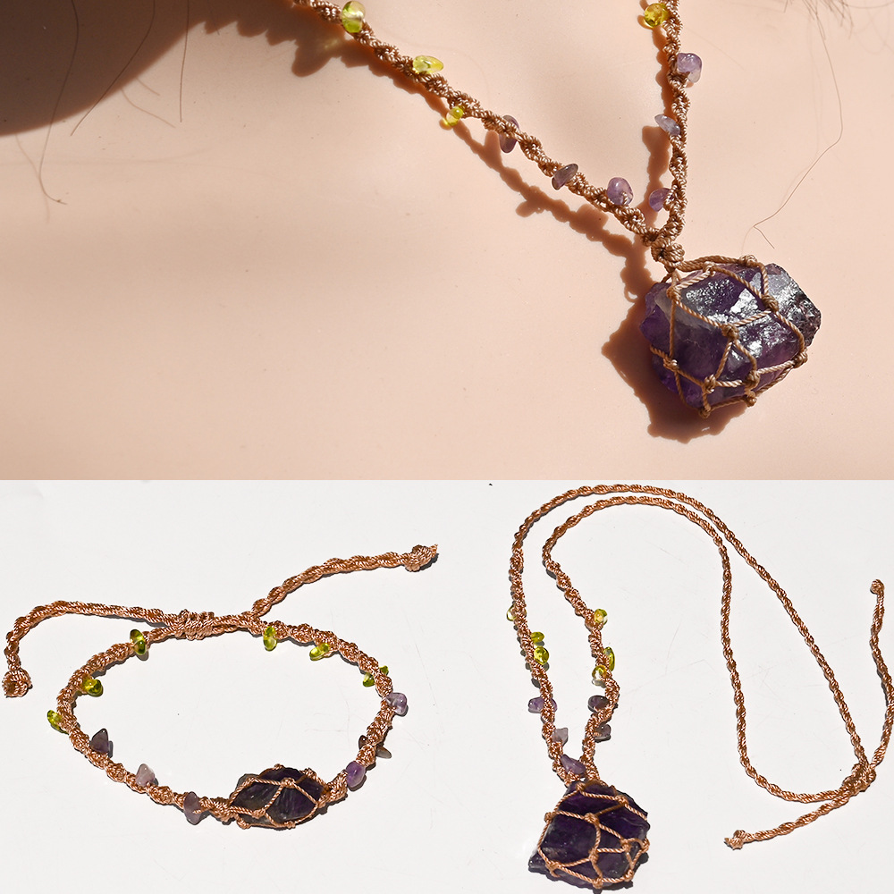 Amethyst Jewelry Set, bracelet & necklace, gold color plated, fashion jewelry, more colors for choice, 130x70x50mm, Sold By PC