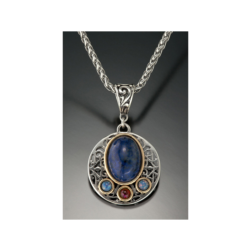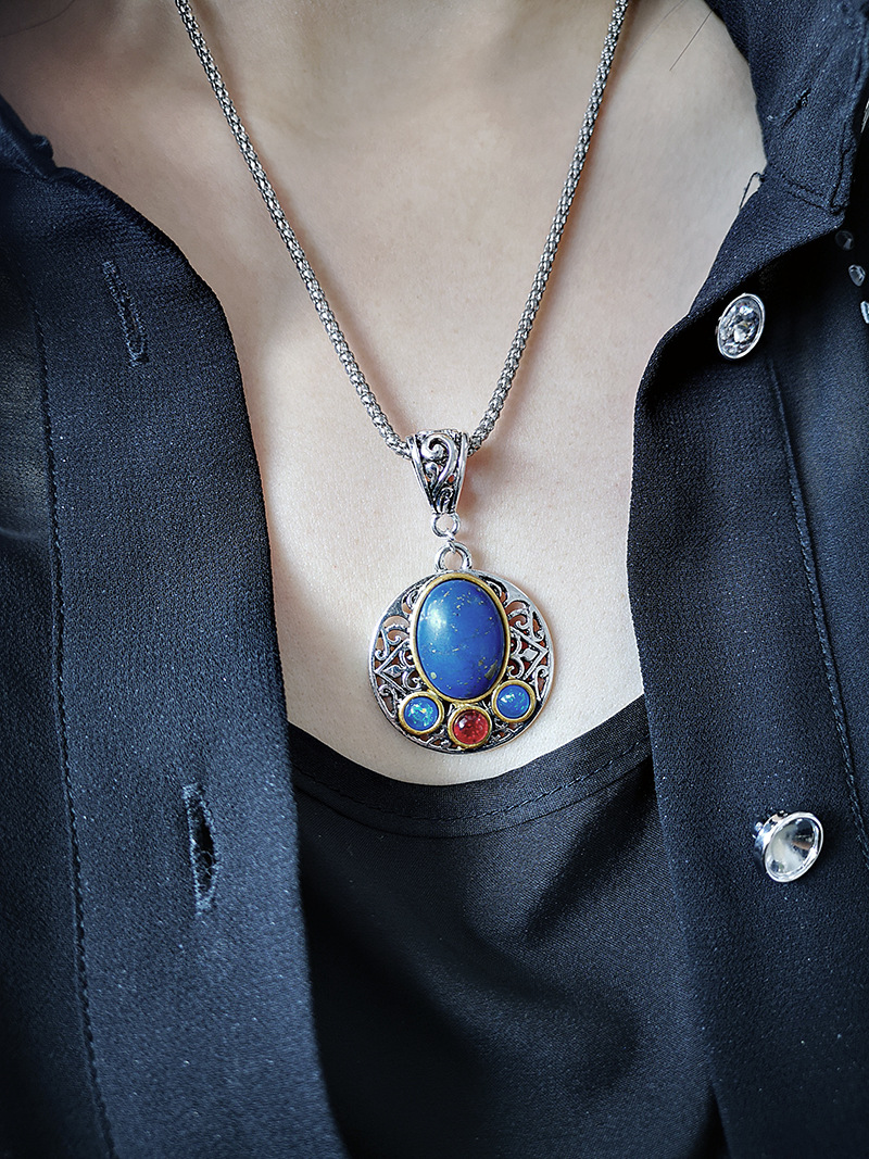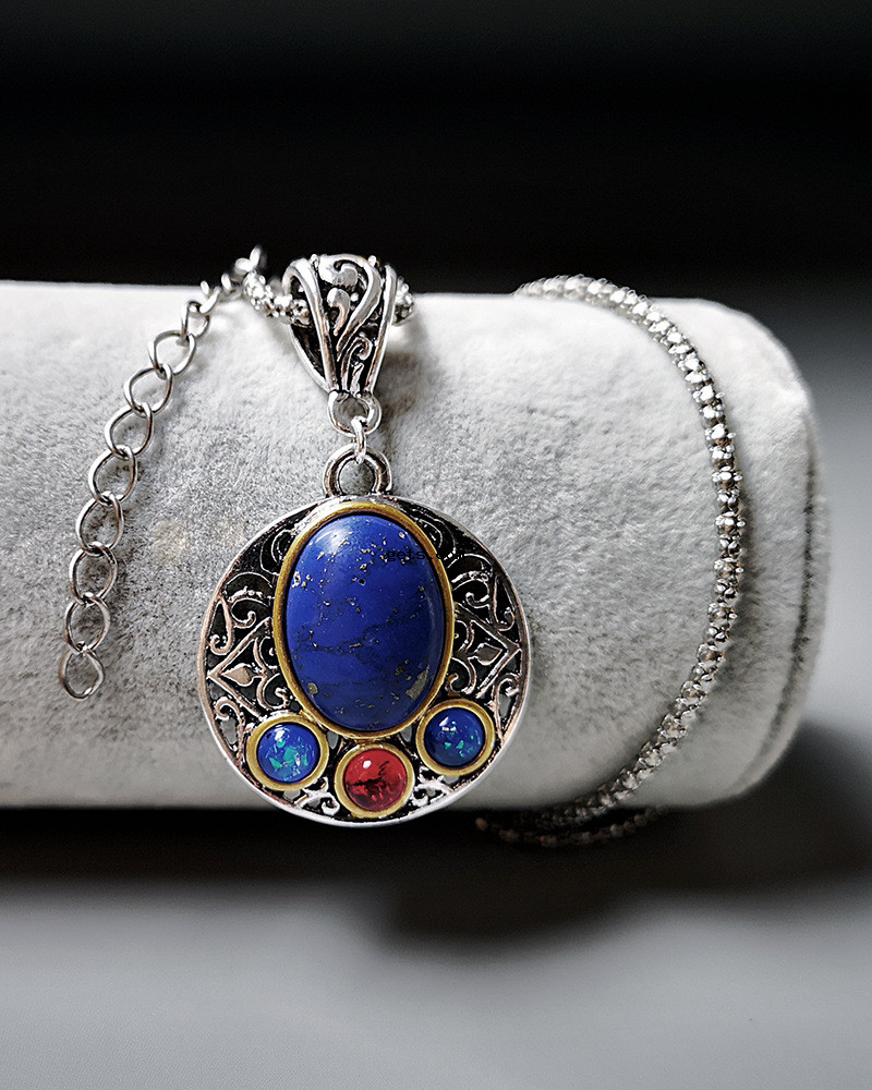 Natural Gemstone Necklace, 304 Stainless Steel, with Lapis Lazuli & Opal, plated, fashion jewelry, mixed colors, 50x29mm, Length:57 cm, Sold By Set