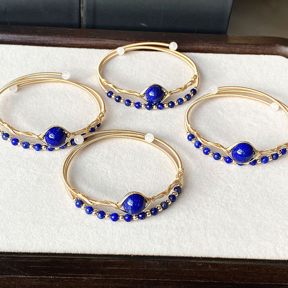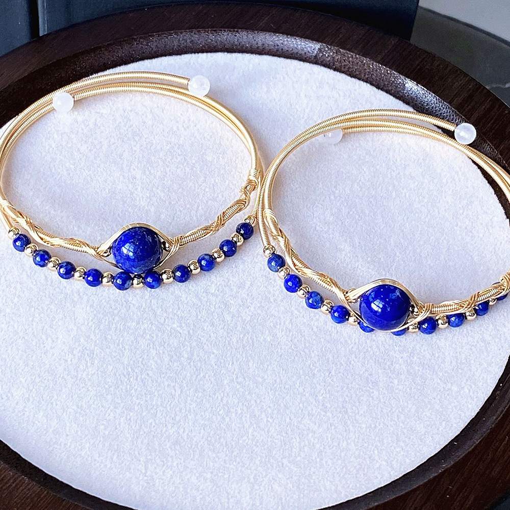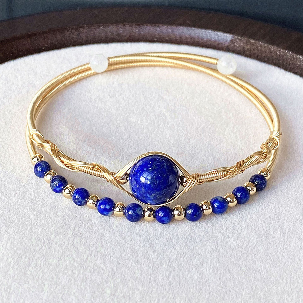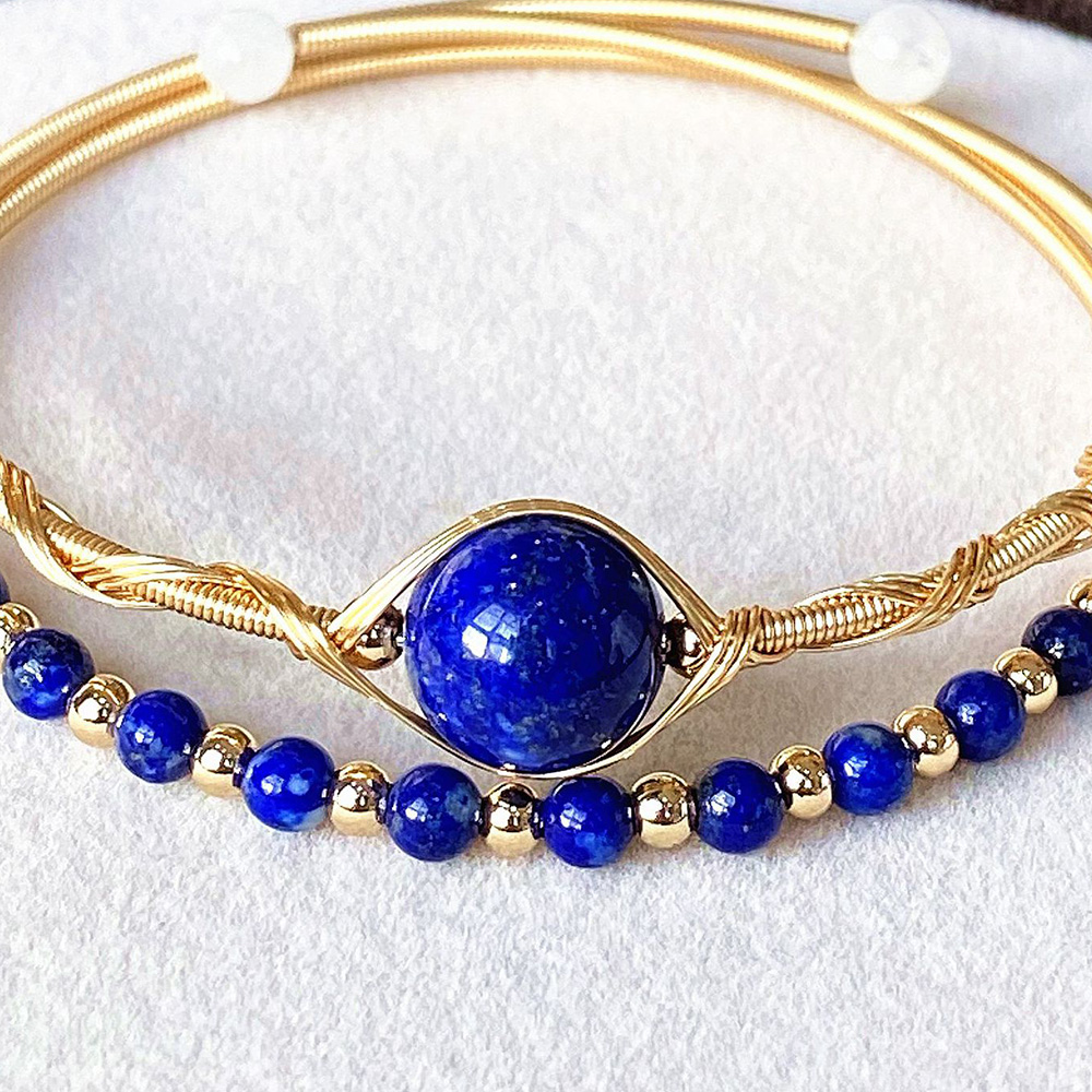 Natural Lapis Lazuli Bracelets, Brass, with Lapis Lazuli, 14K gold-filled, Double Layer & fashion jewelry & for woman, Inner diameter :55mm, Sold By PC