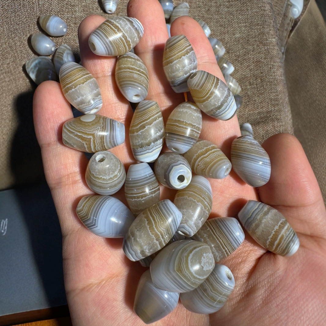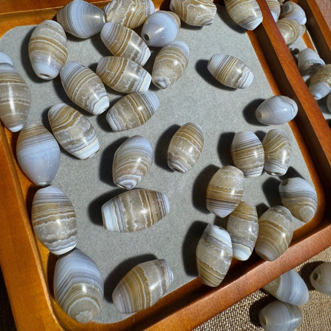 - Natural Tibetan Agate Dzi Beads, Drum, anoint