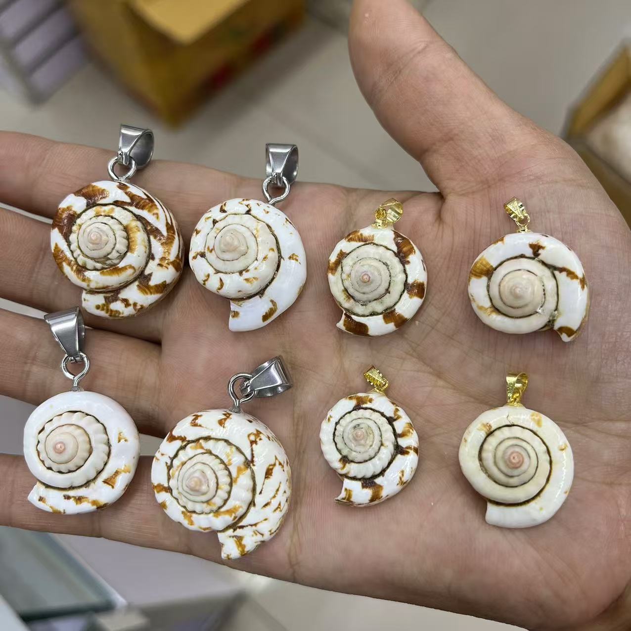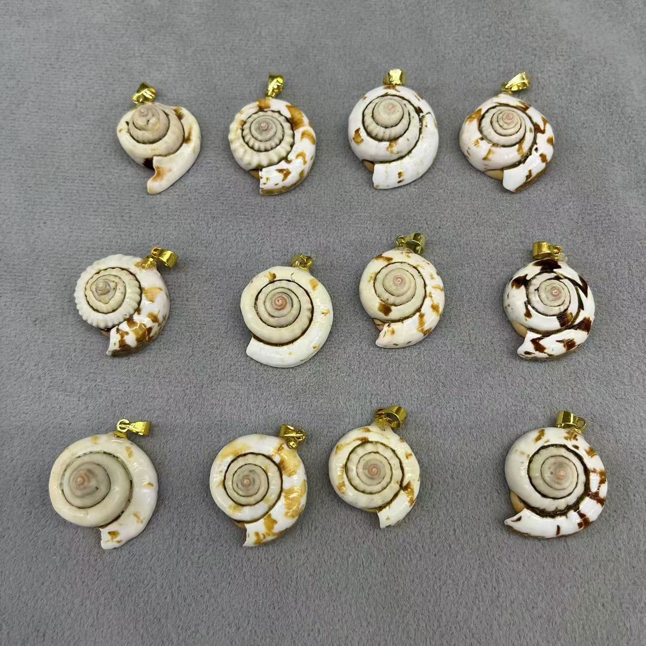 - Natural Trumpet Shell Pendants, with Brass, Conch