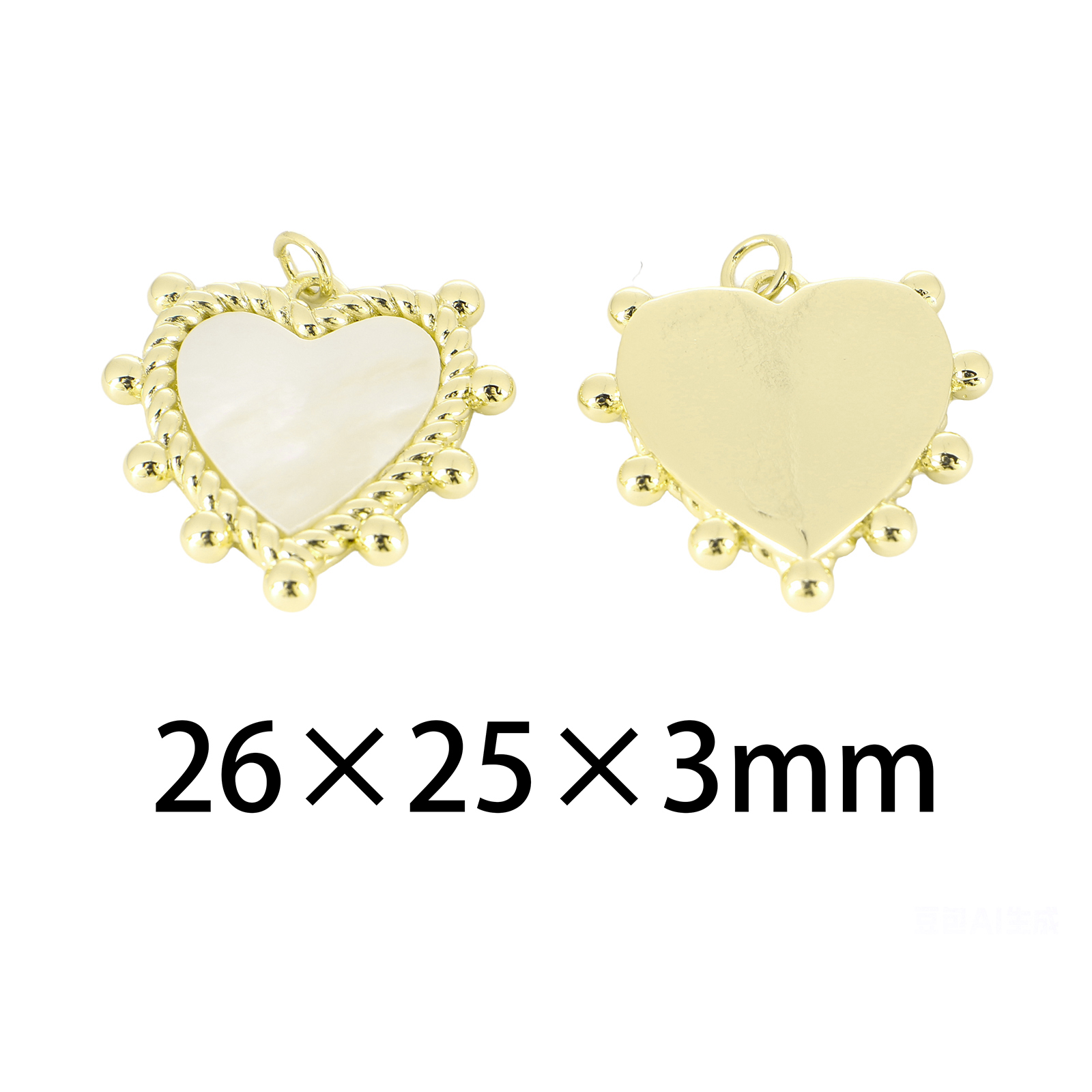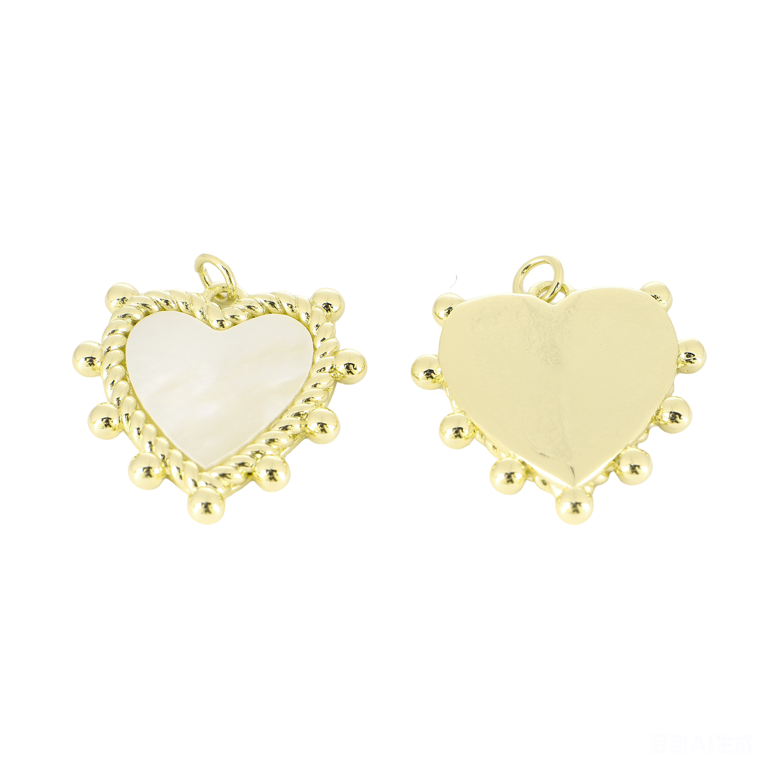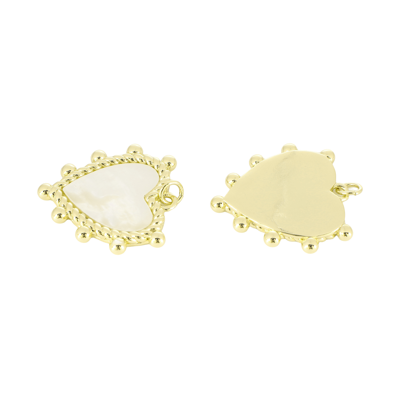 Natural White Shell Pendants, Brass, with White Shell, Heart, gold color plated, DIY, 26x25x3mm, Sold By PC