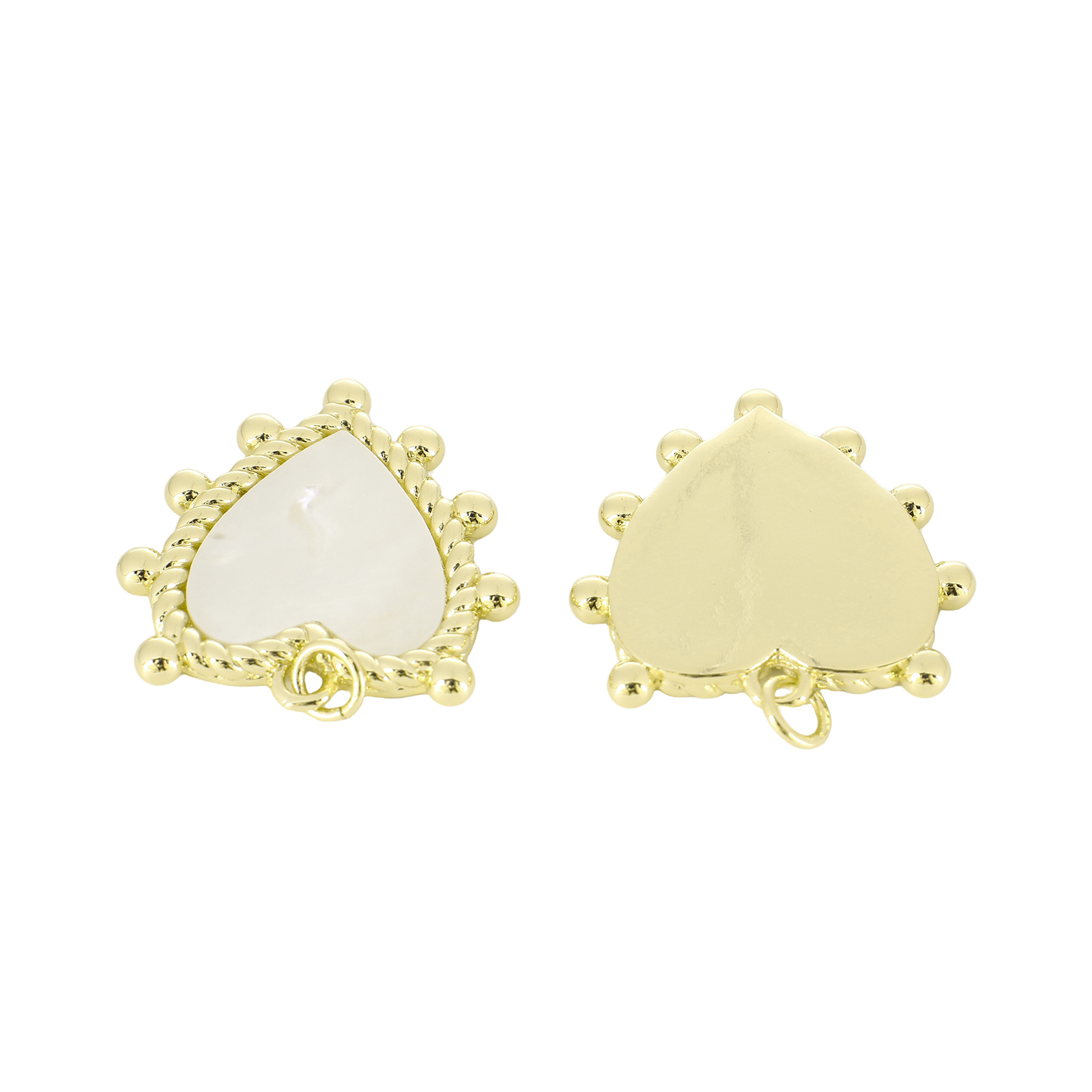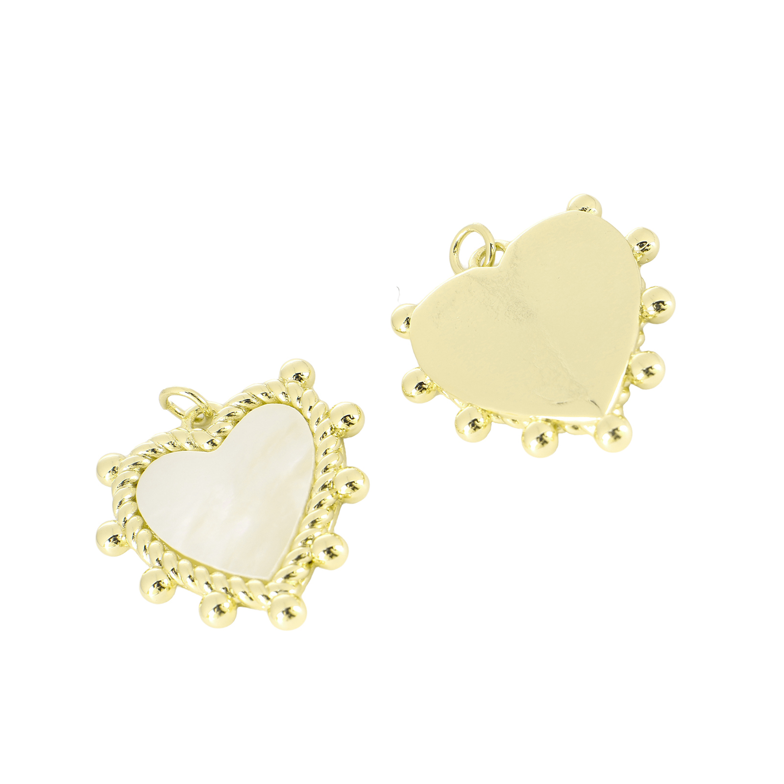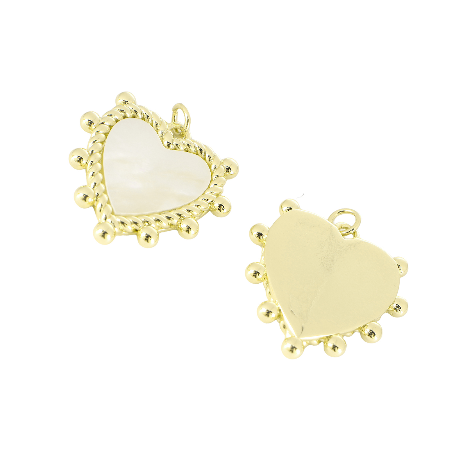 Natural White Shell Pendants, Brass, with White Shell, Heart, gold color plated, DIY, 26x25x3mm, Sold By PC