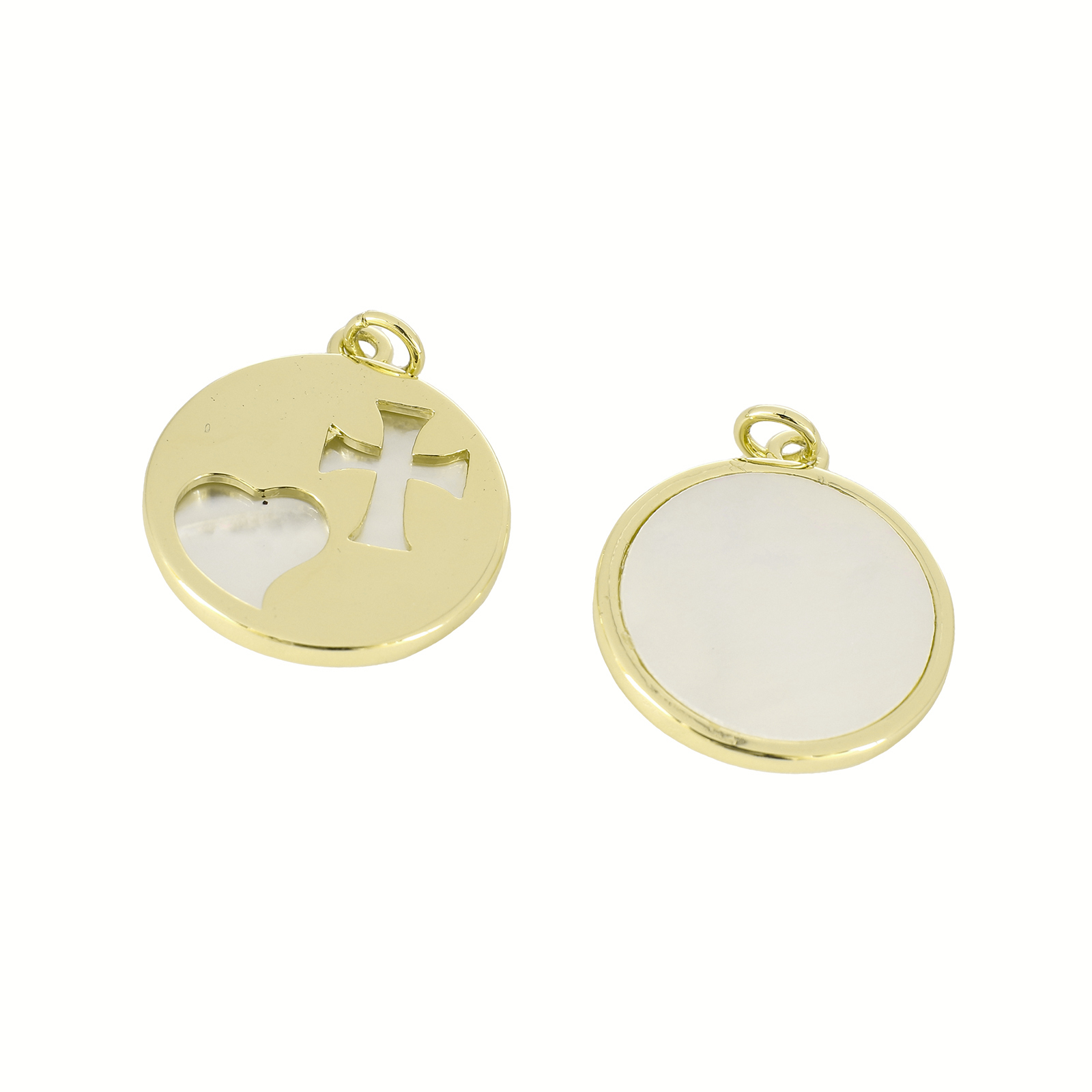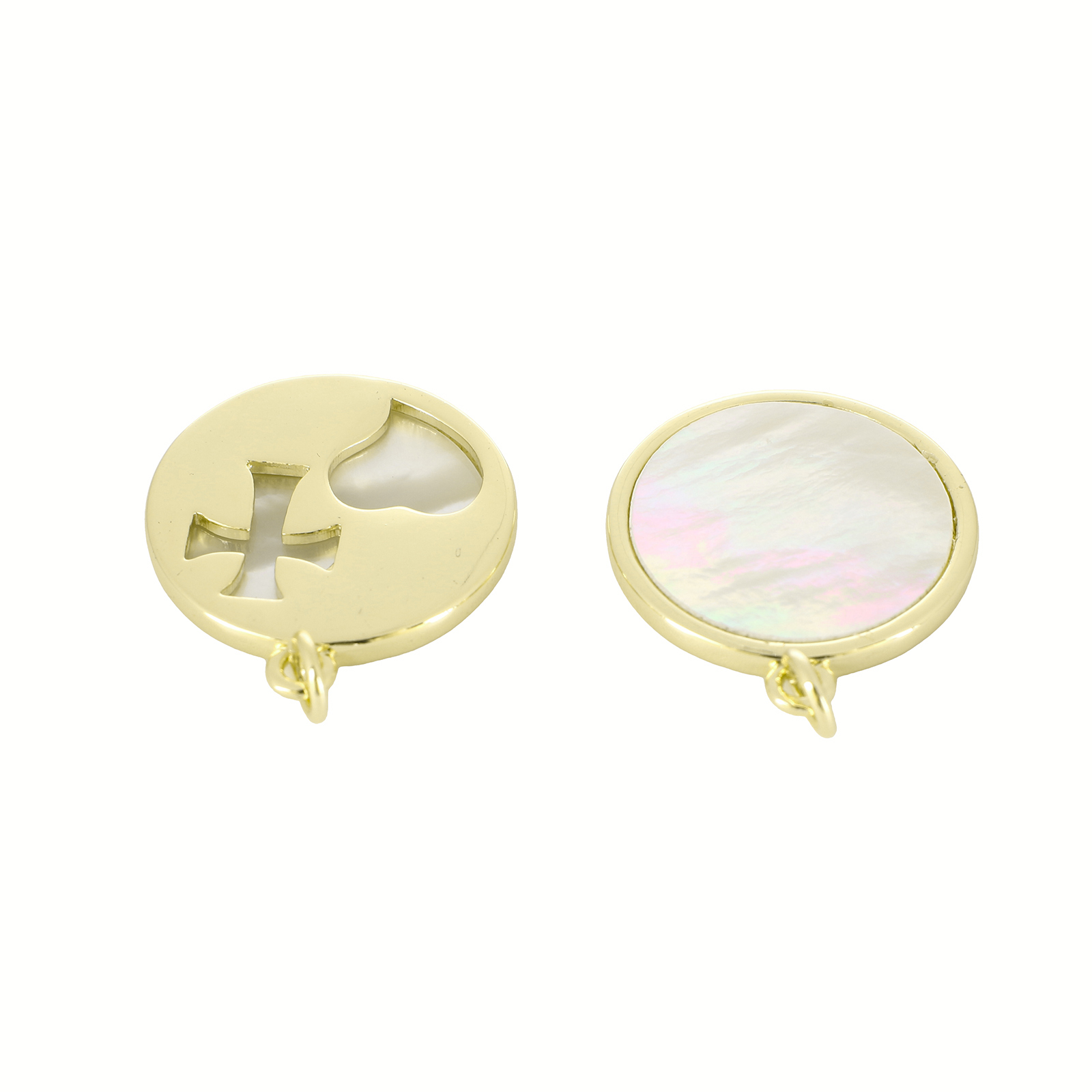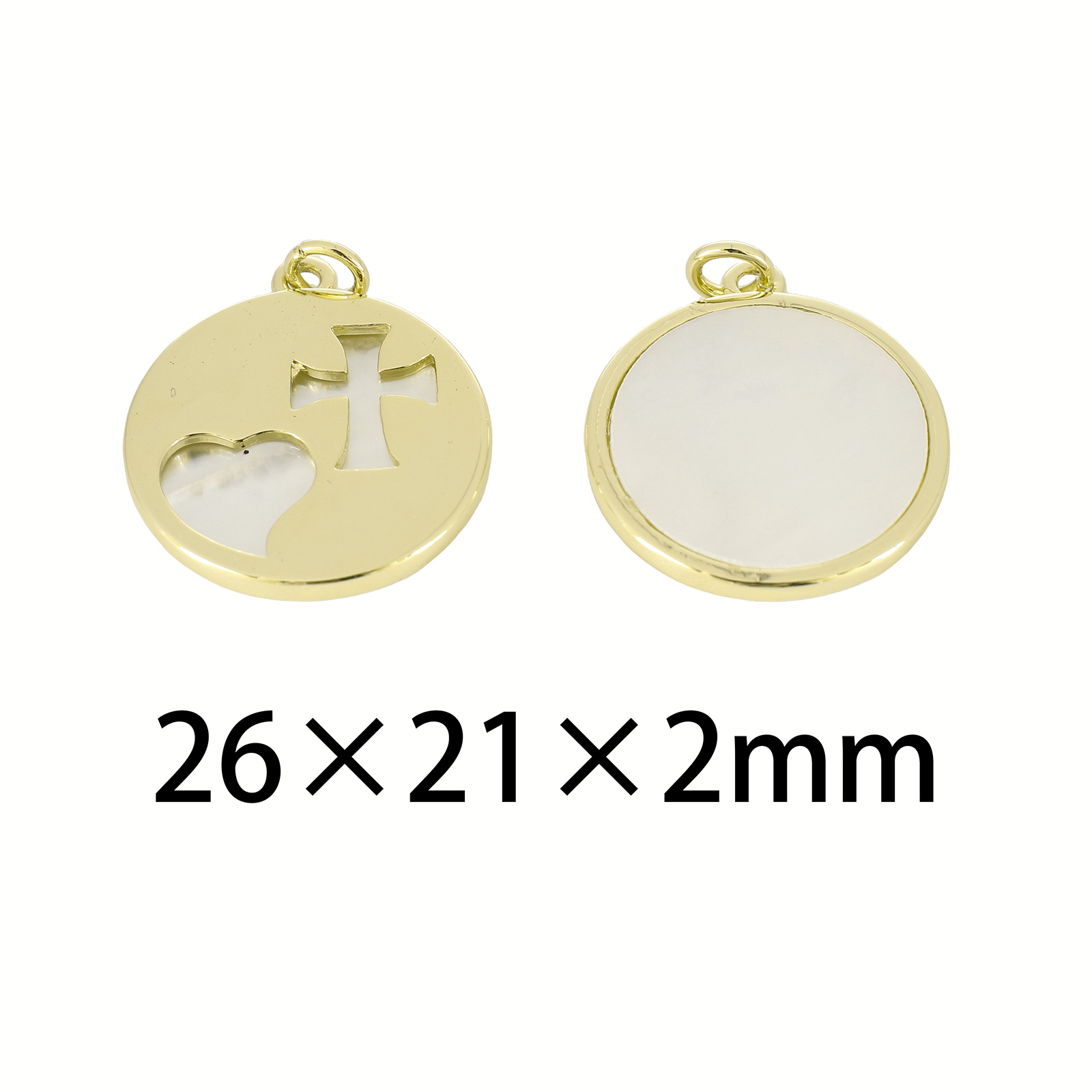 Natural White Shell Pendants, Brass, with White Shell, Flat Round, gold color plated, DIY & hollow, 26x21x2mm, Sold By PC