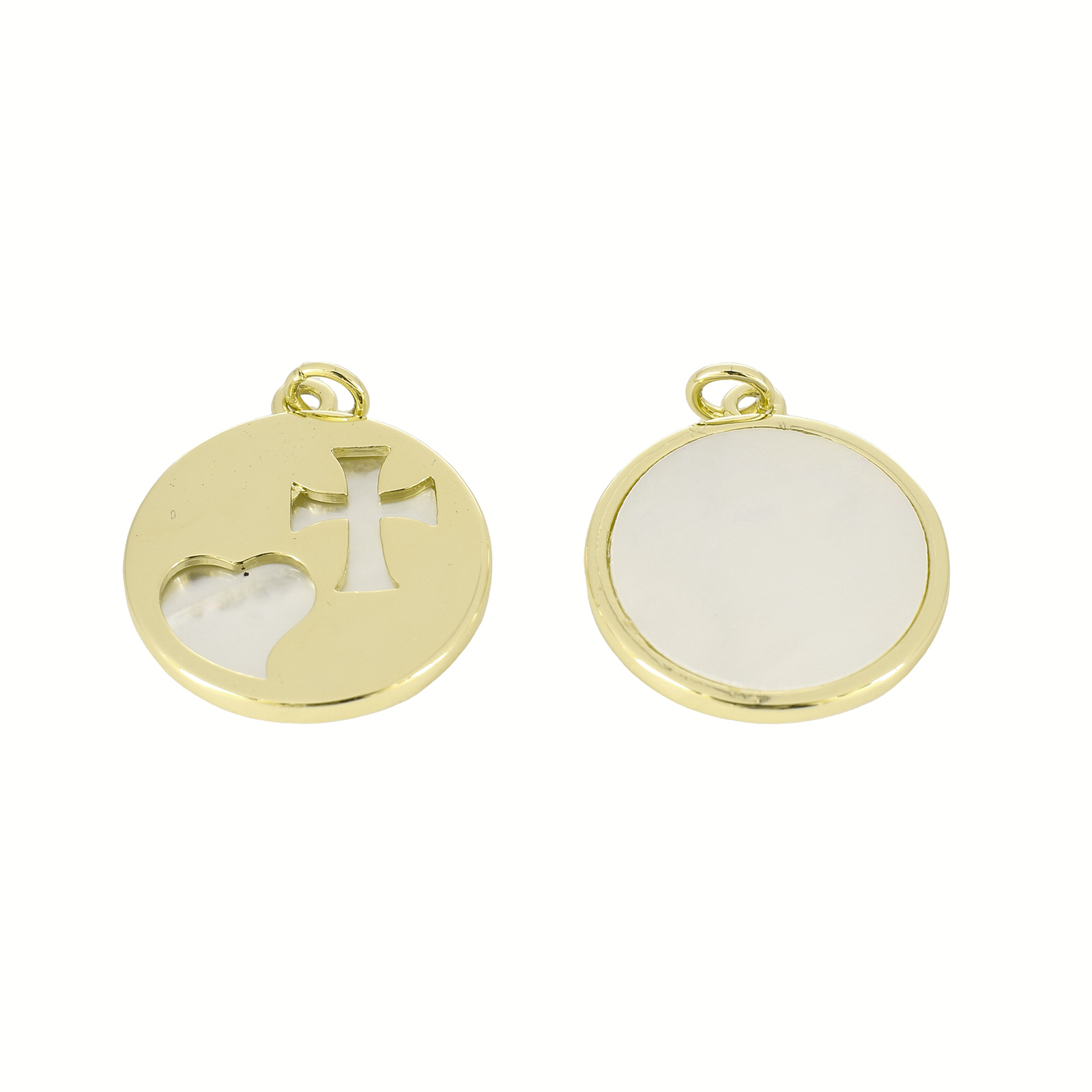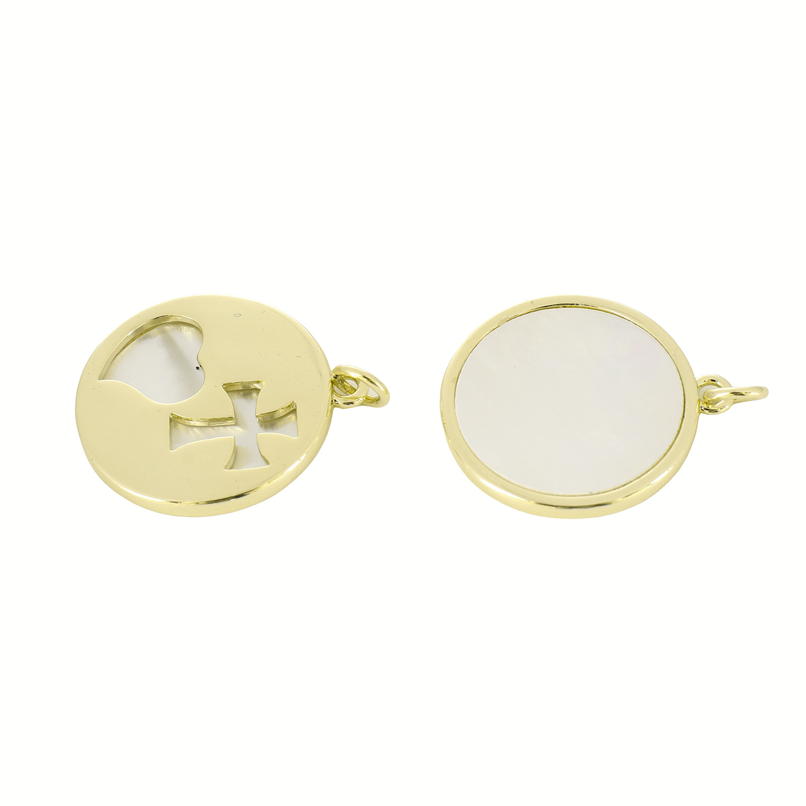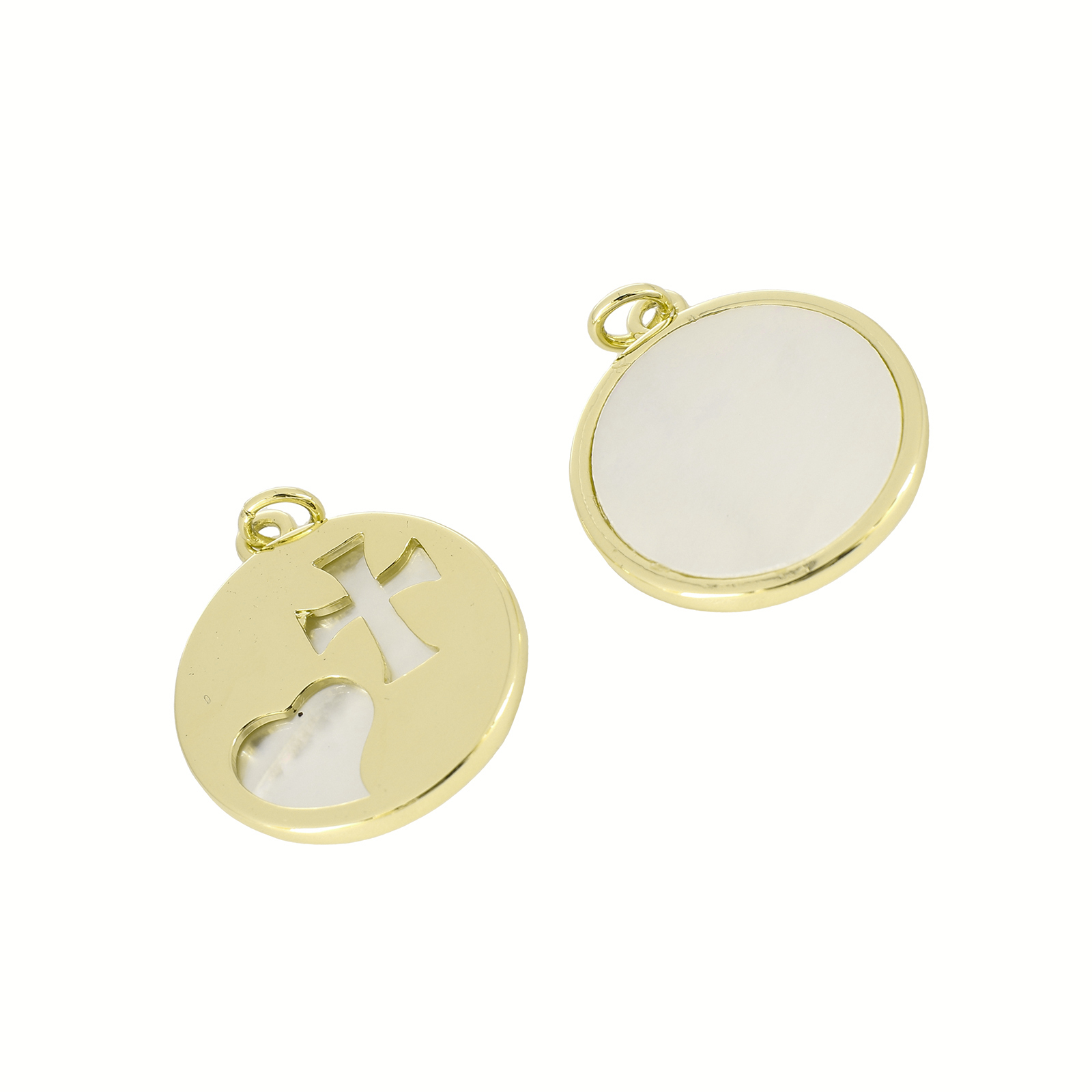 Natural White Shell Pendants, Brass, with White Shell, Flat Round, gold color plated, DIY & hollow, 26x21x2mm, Sold By PC