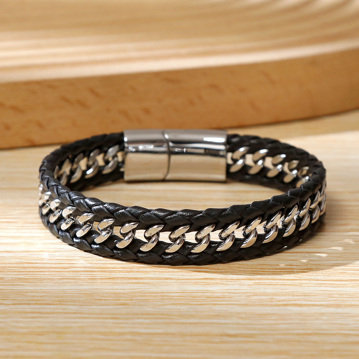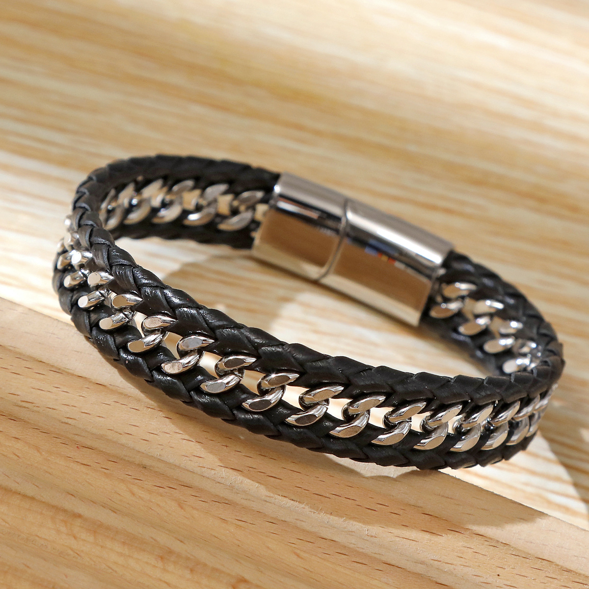 PU Leather Cord Bracelets, 304 Stainless Steel, with Microfiber PU, handmade, fashion jewelry & for man, more colors for choice, Length:21 cm, Sold By PC