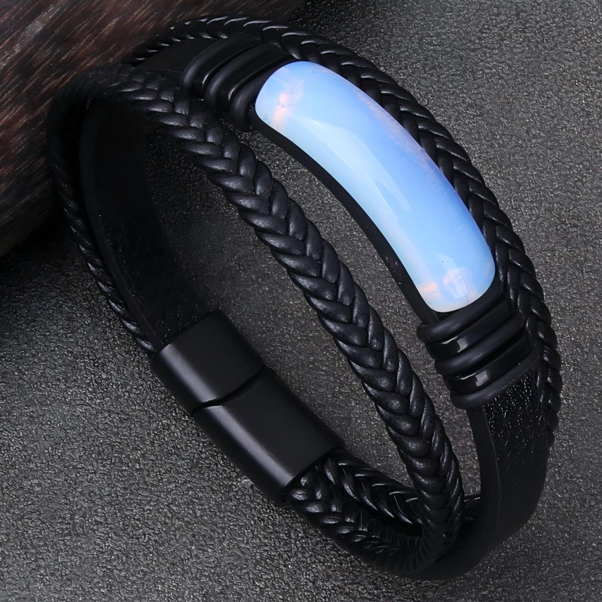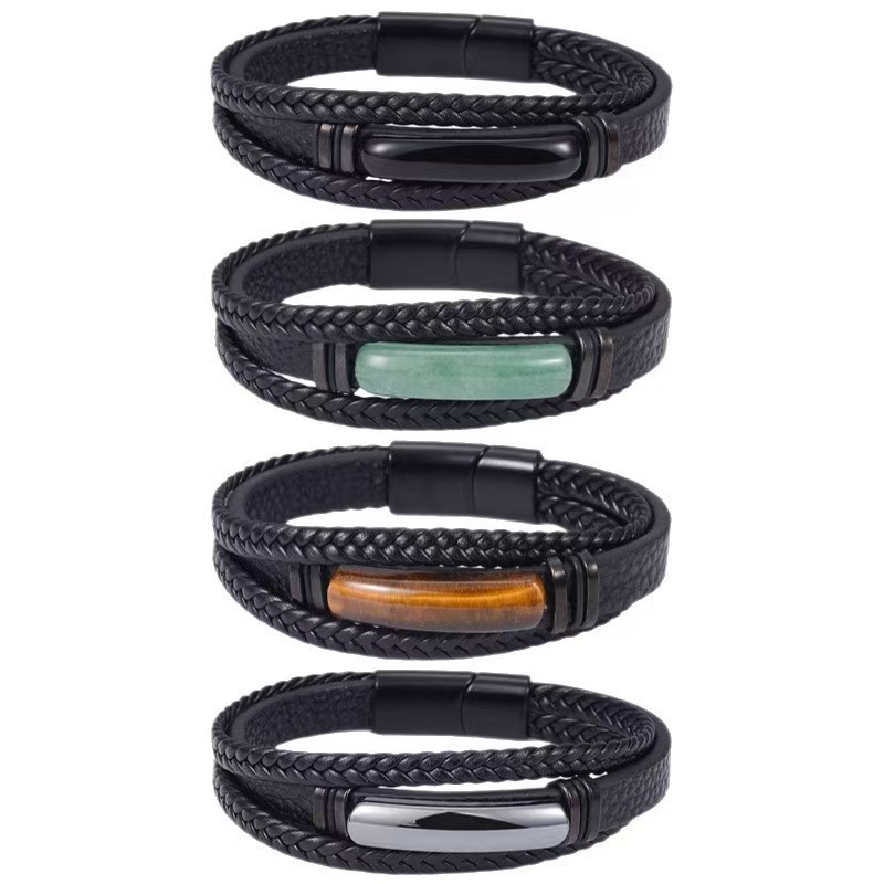PU Leather Bracelet, with Gemstone & 304 Stainless Steel & Tibetan Style, multilayer & Unisex & different size for choice, more colors for choice, Sold By PC