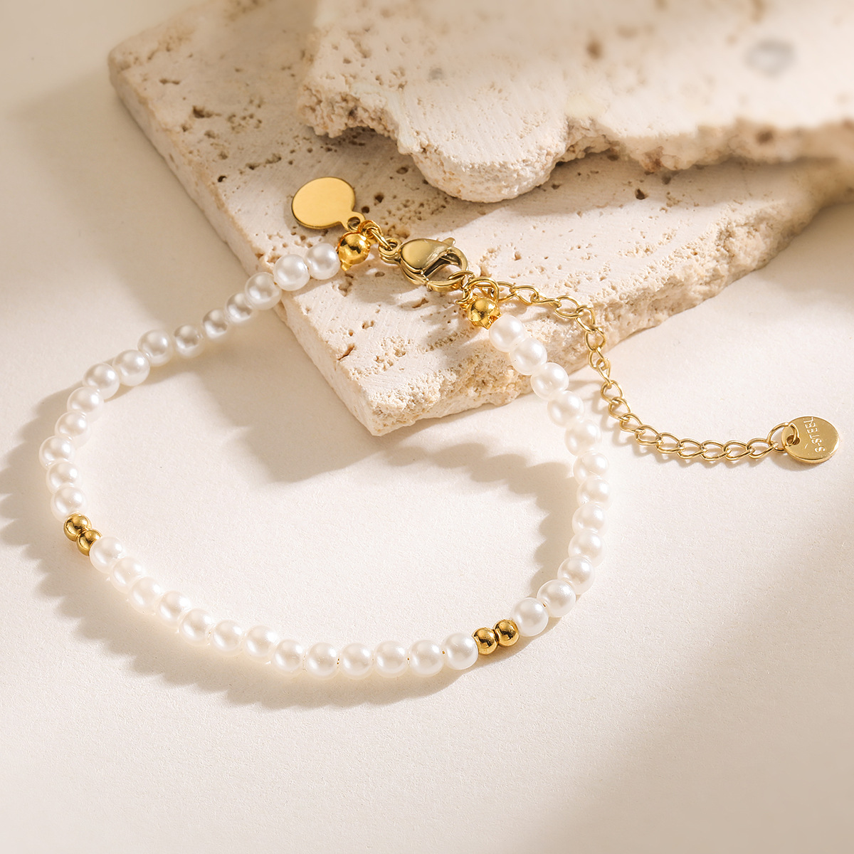 - Plastic Bracelet, Brass, with Plastic Pearl