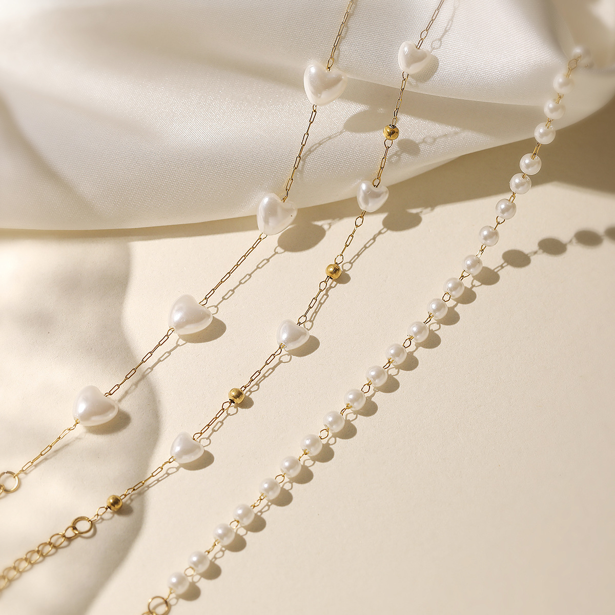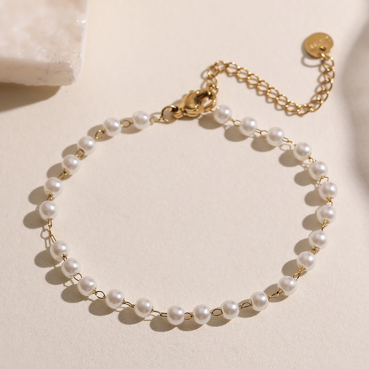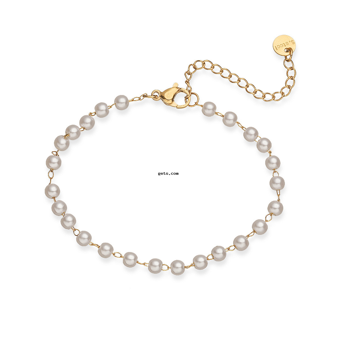 304 Stainless Steel Bracelet, with Plastic Pearl, gold color plated, different styles for choice & for woman, Sold By PC