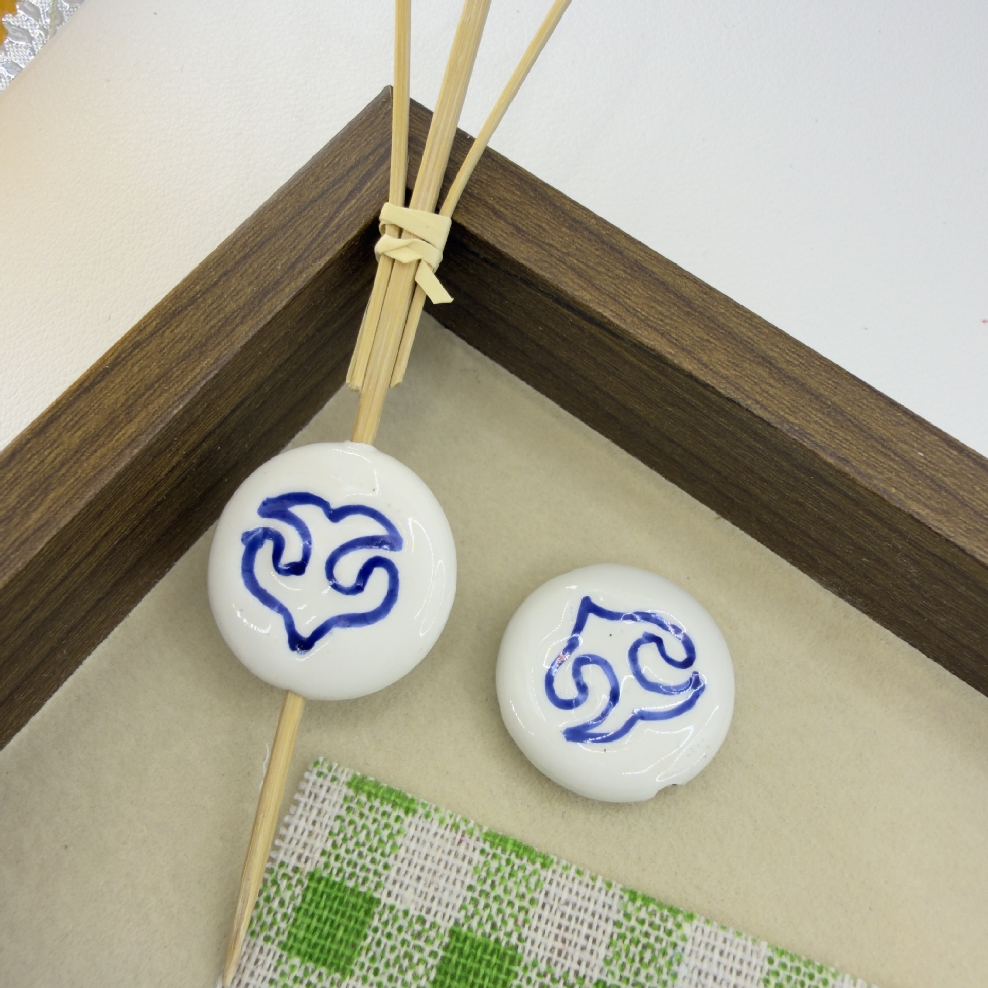 Porcelain Jewelry Beads, Flat Round, hand drawing, DIY & double-sided, more colors for choice, 24.50x8mm, Hole:Approx 2mm, 100PCs/Bag, Sold By Bag