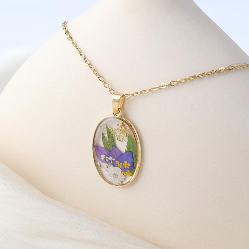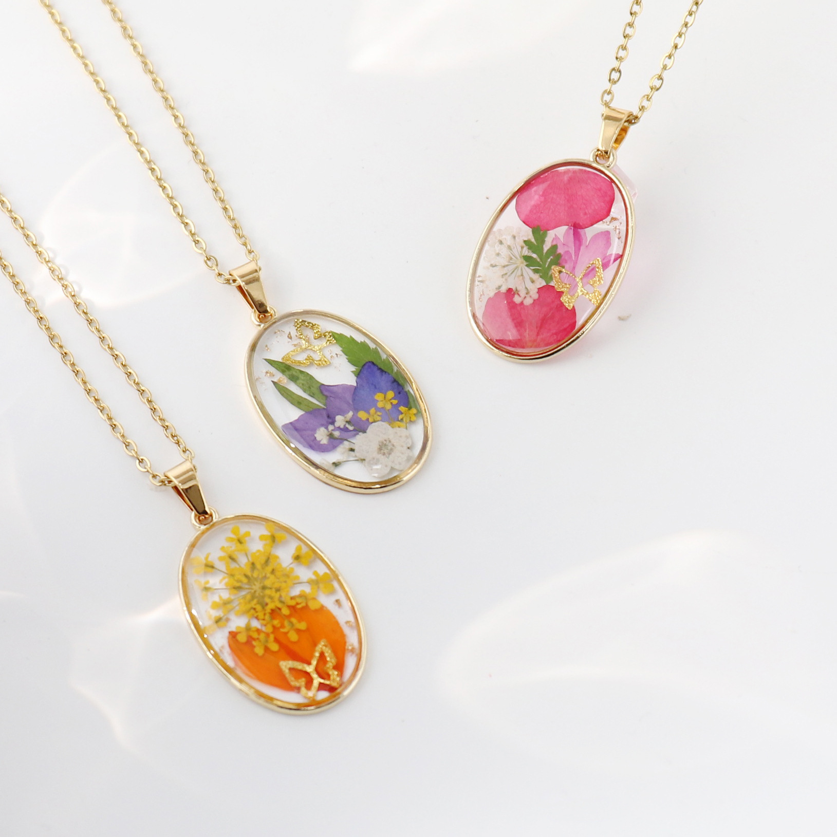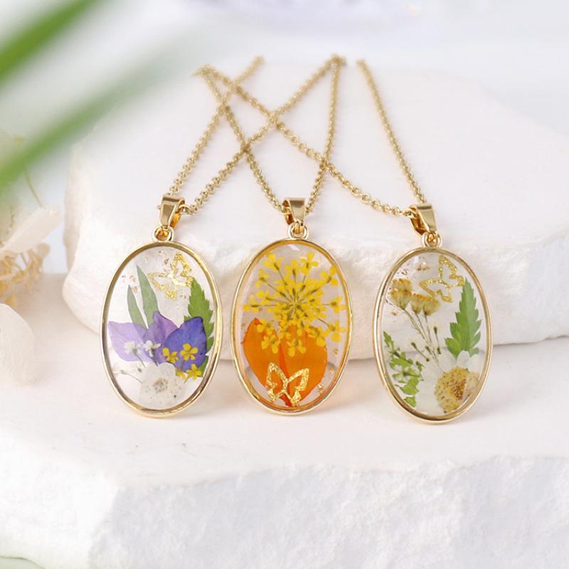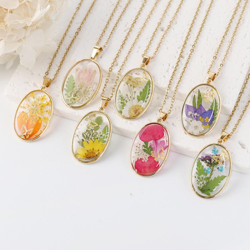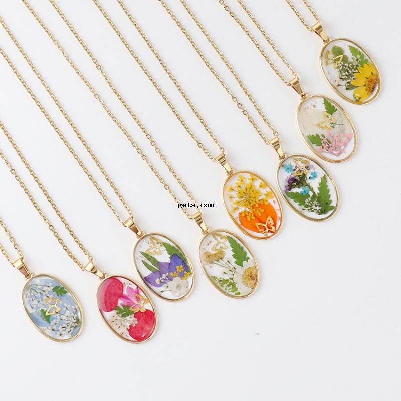 Tibetan Style Necklace, with 304 Stainless Steel Chain & Dried Flower & Resin, epoxy gel, fashion jewelry & different designs for choice & for woman, Length:Approx 45 cm, 6PCs/Bag, Sold By Bag