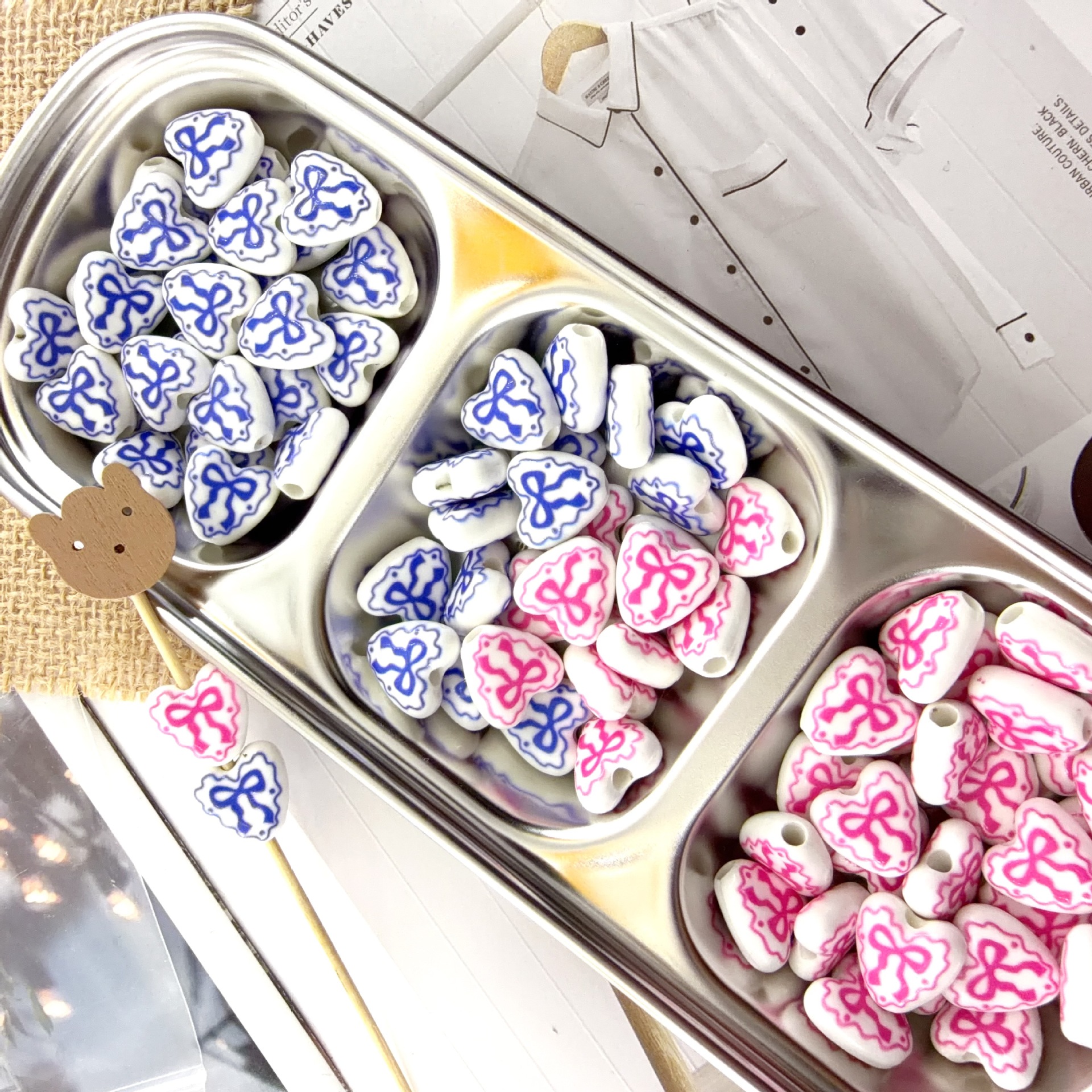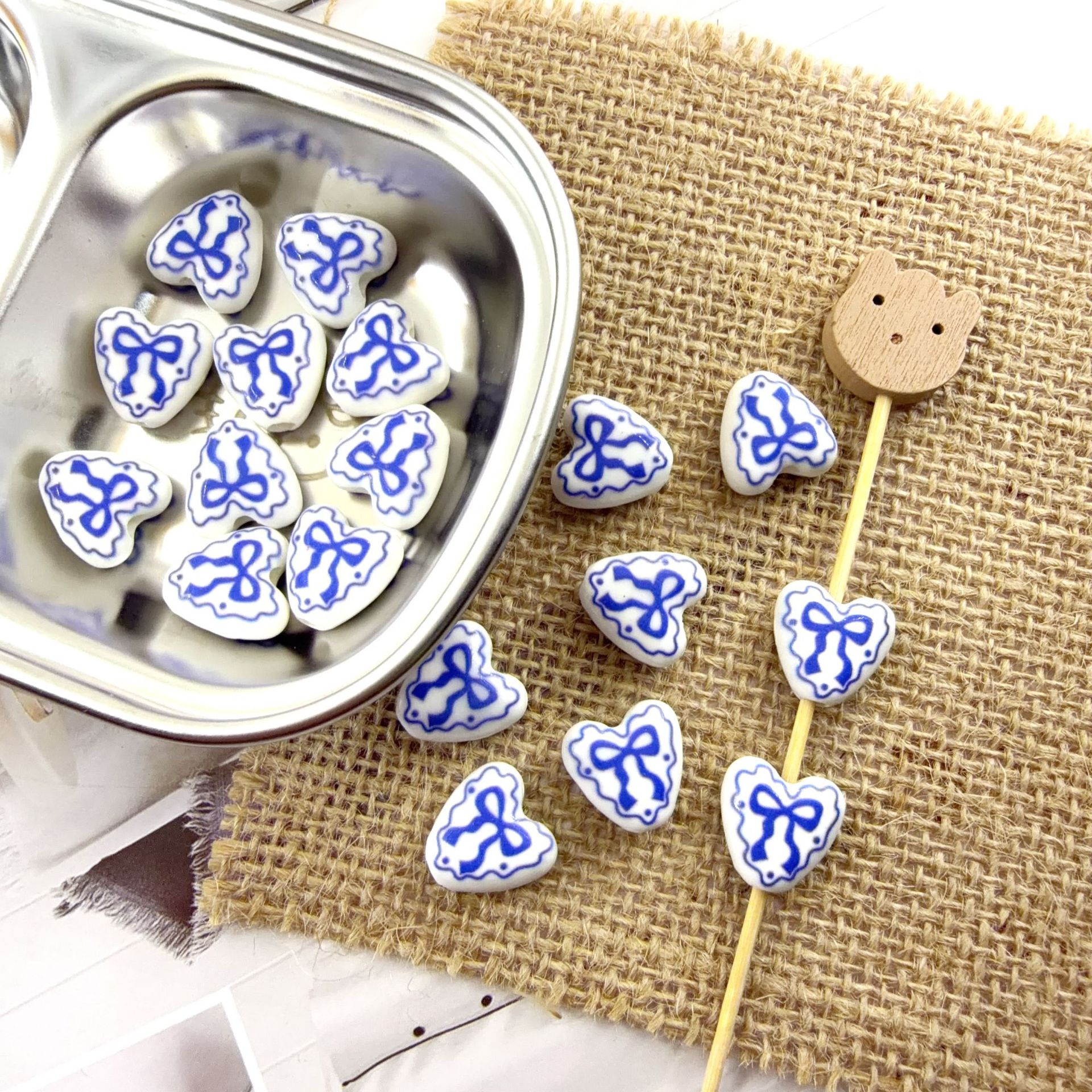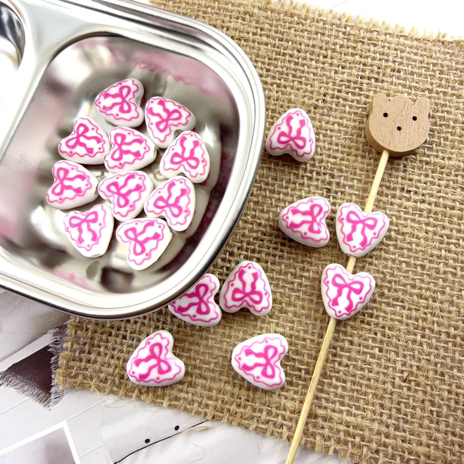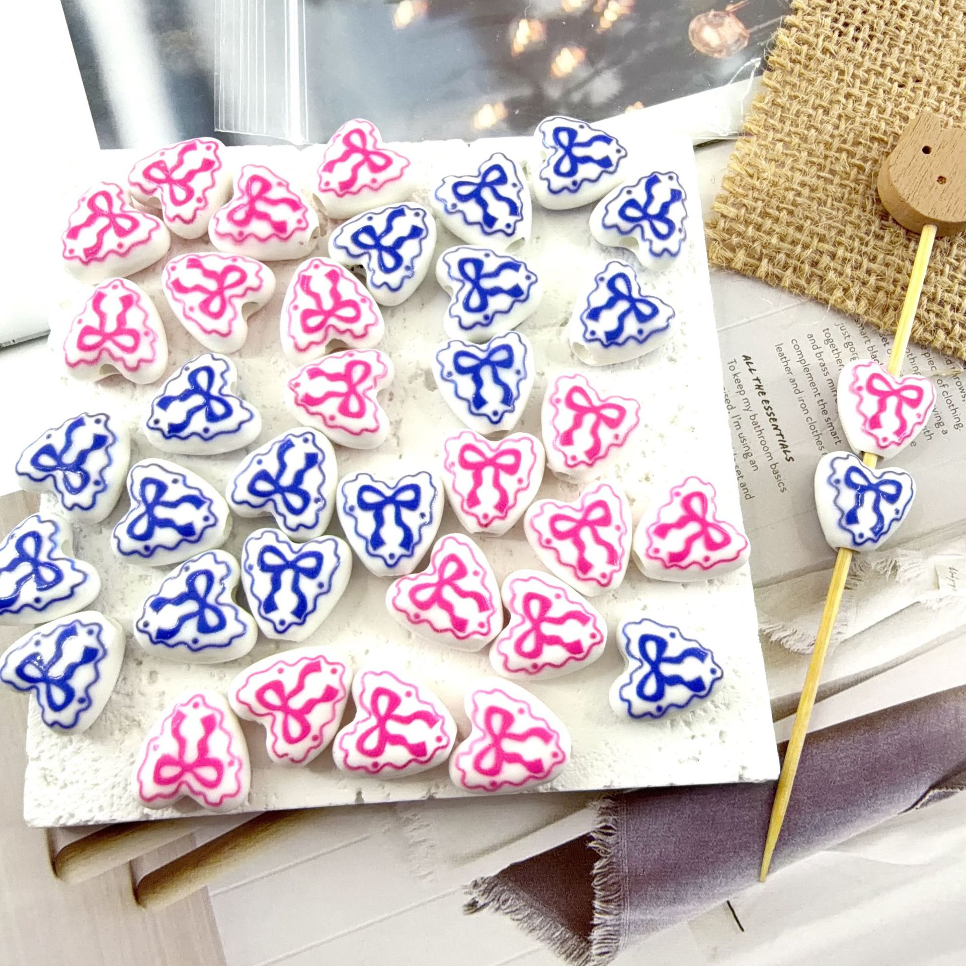 - Printing Porcelain Beads, Oval, with flower pattern