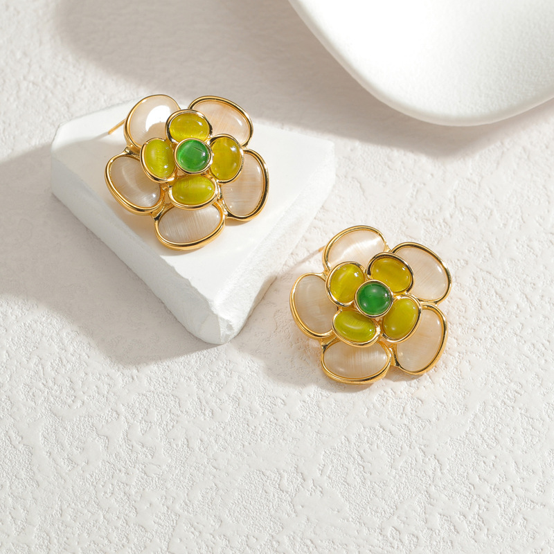 - Resin Earring, Tibetan Style, with Crystal & Resin