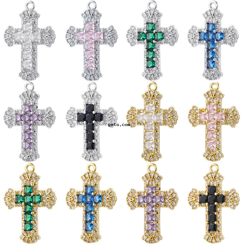 Rhinestone Brass Pendants, Cross, plated, DIY & with rhinestone, more colors for choice, 16x23mm, Sold By PC