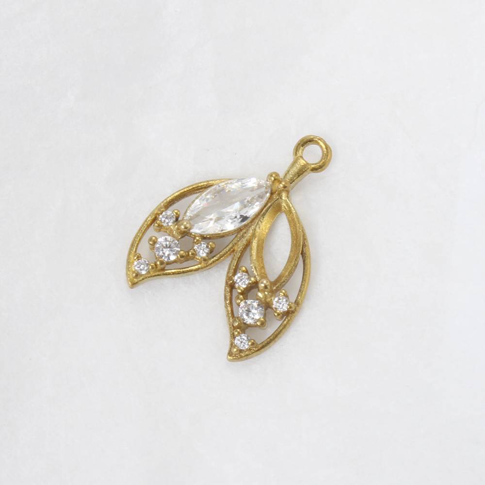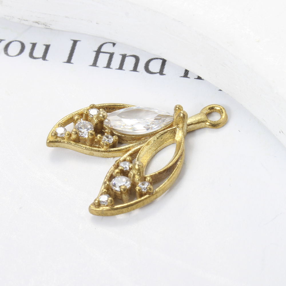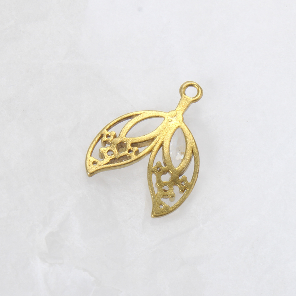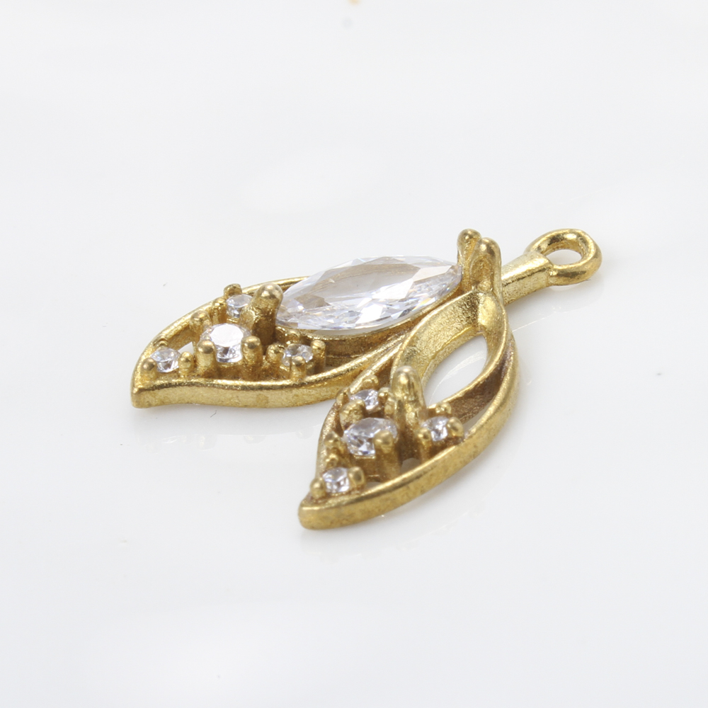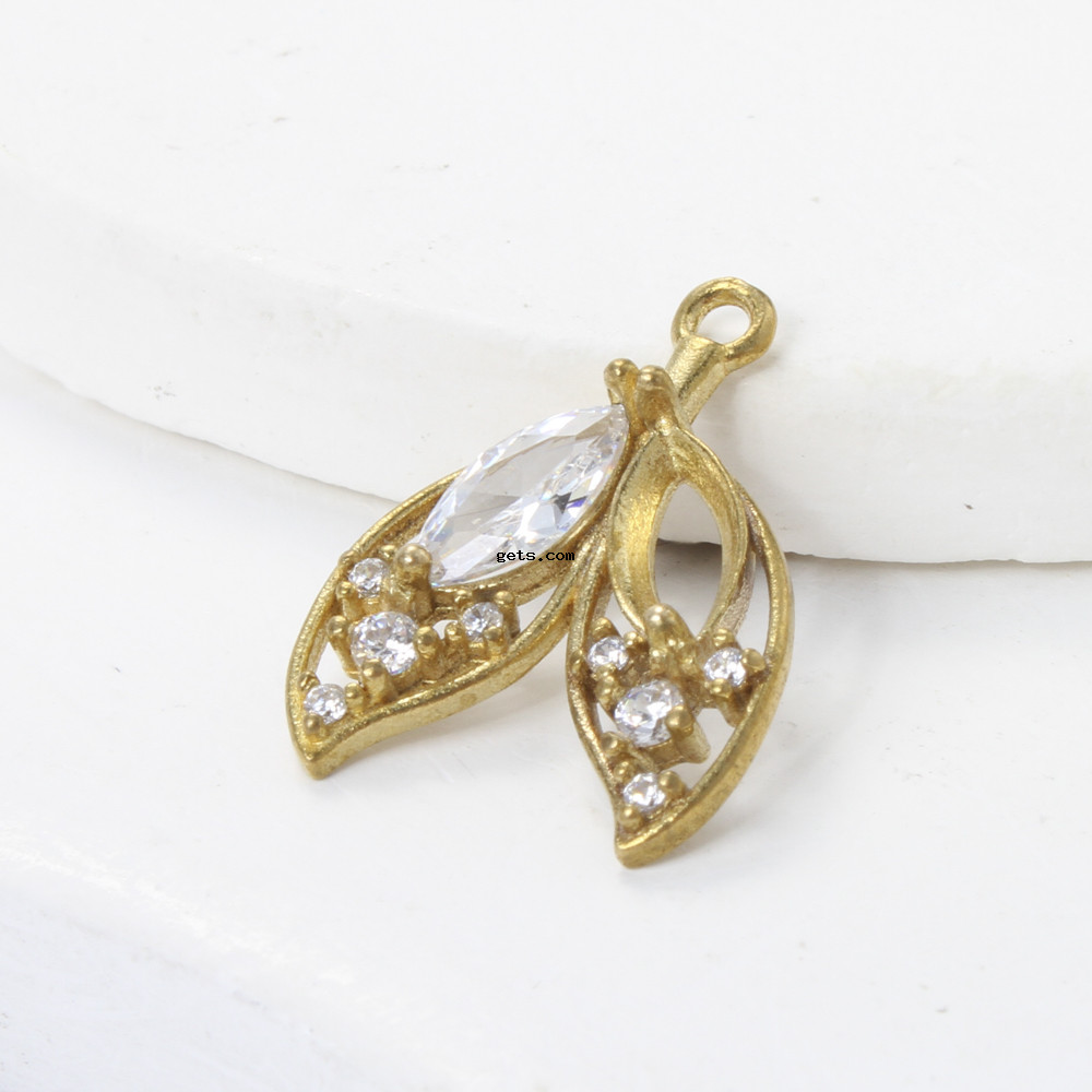 Rhinestone Brass Pendants, Leaf, plated, DIY & with rhinestone, golden, nickel, lead & cadmium free, 19x14.50x3.40mm, Sold By PC