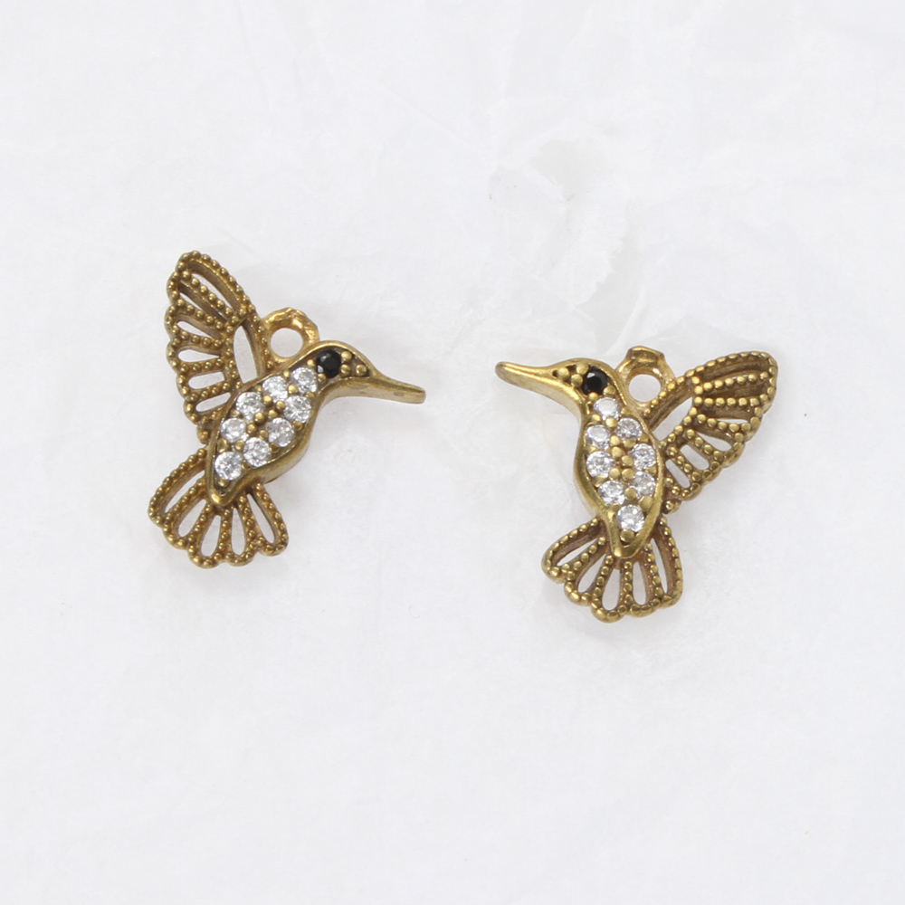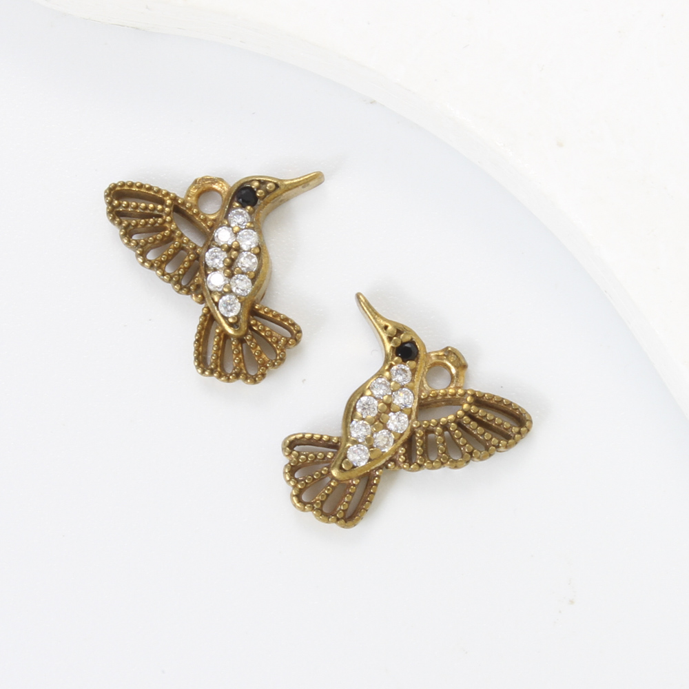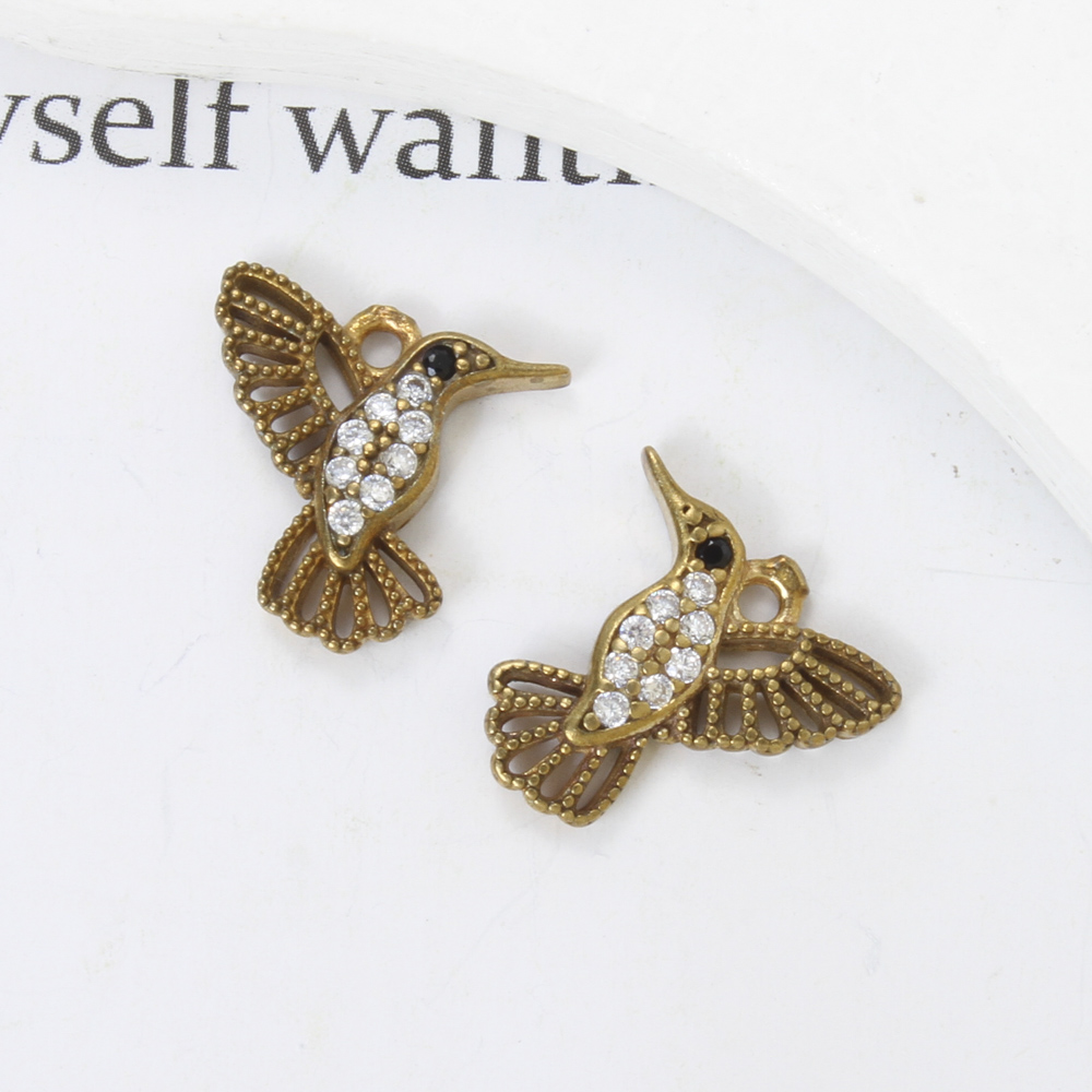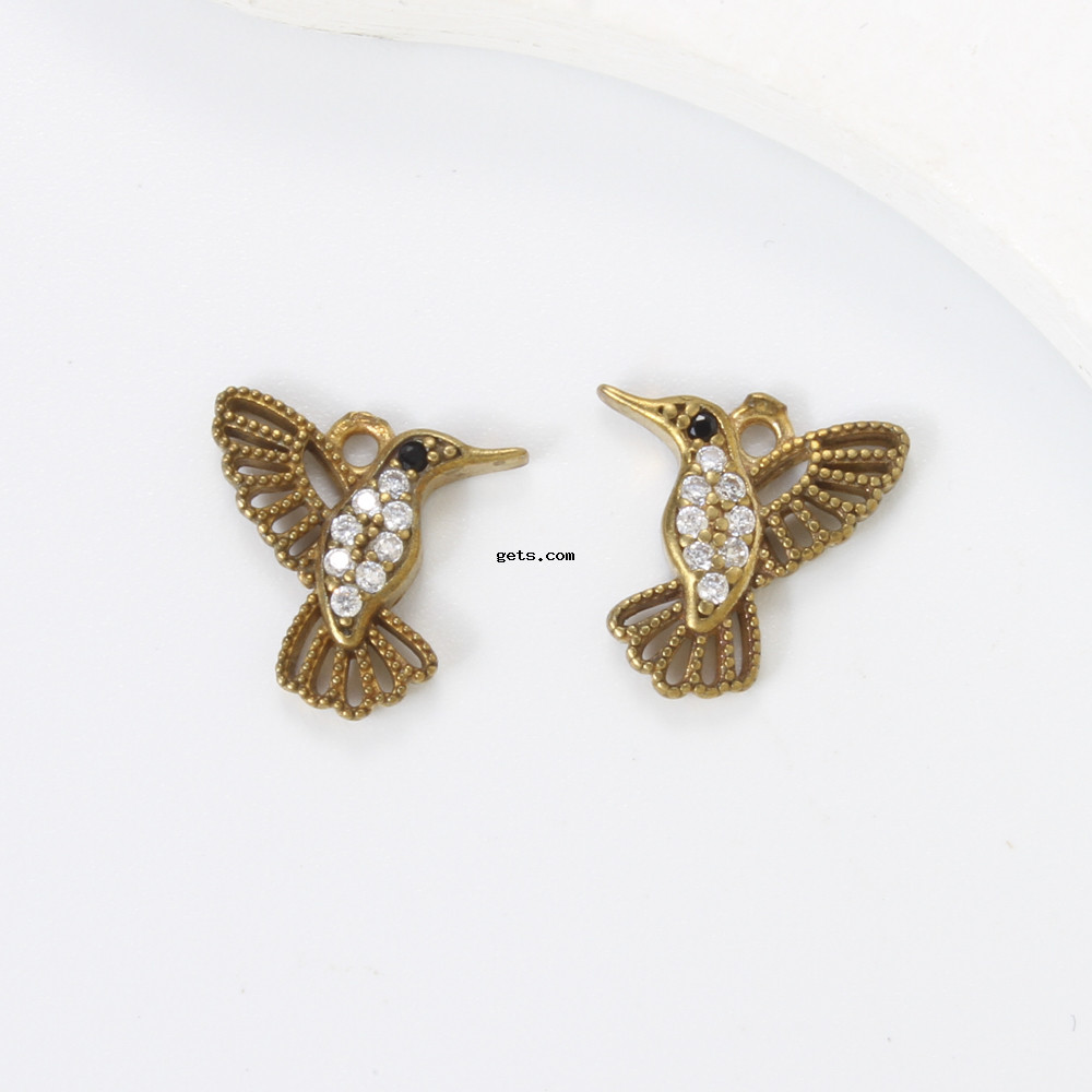 Rhinestone Brass Pendants, Bird, plated, DIY & with rhinestone, golden, nickel, lead & cadmium free, 12.60x7x2.30mm, Sold By PC