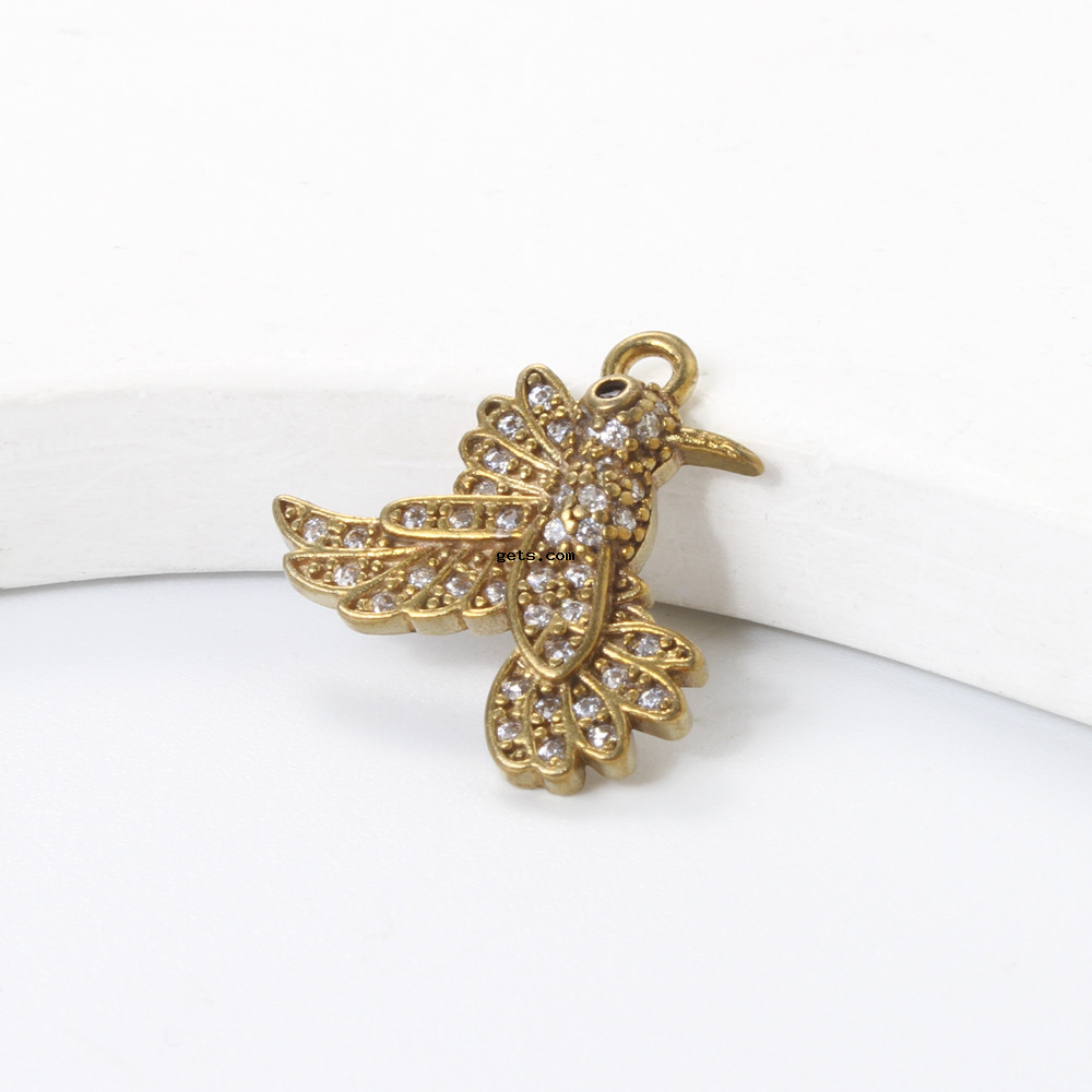 Rhinestone Brass Pendants, Bird, plated, DIY & with rhinestone, golden, nickel, lead & cadmium free, 17.70x16.60x3mm, Sold By PC