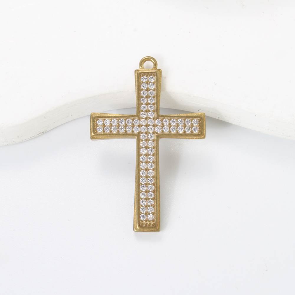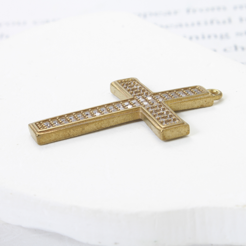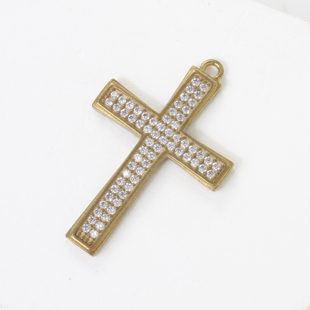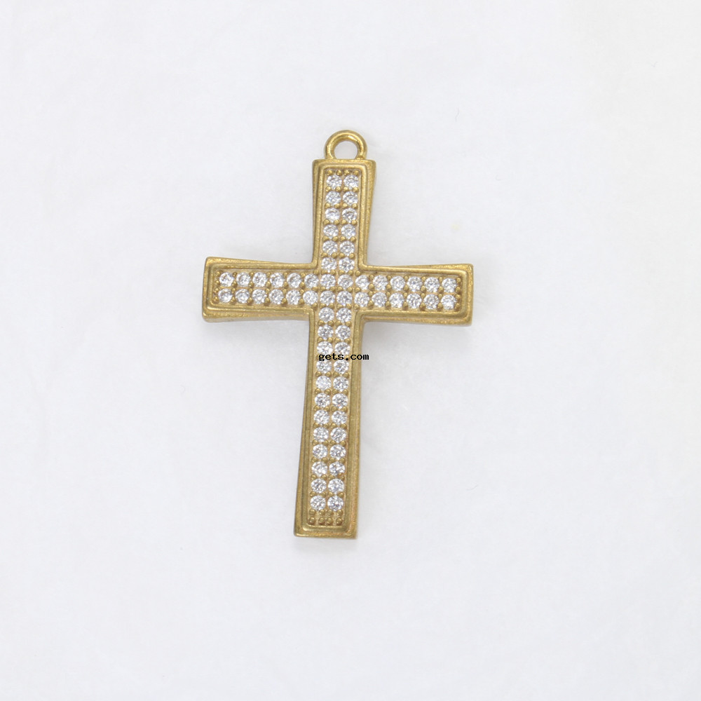 Rhinestone Brass Pendants, Cross, plated, DIY & with rhinestone, golden, nickel, lead & cadmium free, 34.70x22.60x2.30mm, Sold By PC