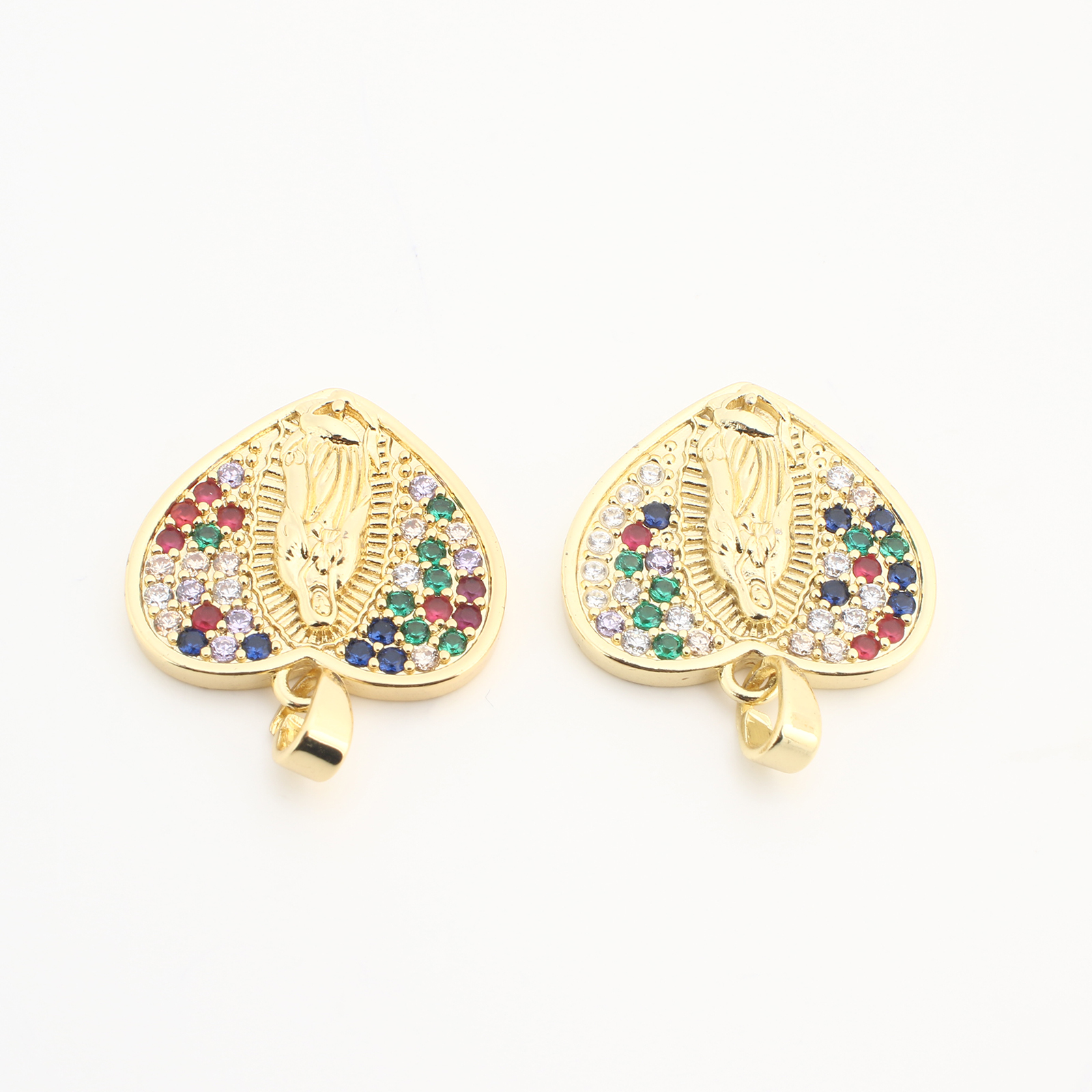 Rhinestone Brass Pendants, Heart, plated, DIY & with rhinestone, golden, nickel, lead & cadmium free, 20PCs/Bag, Sold By Bag